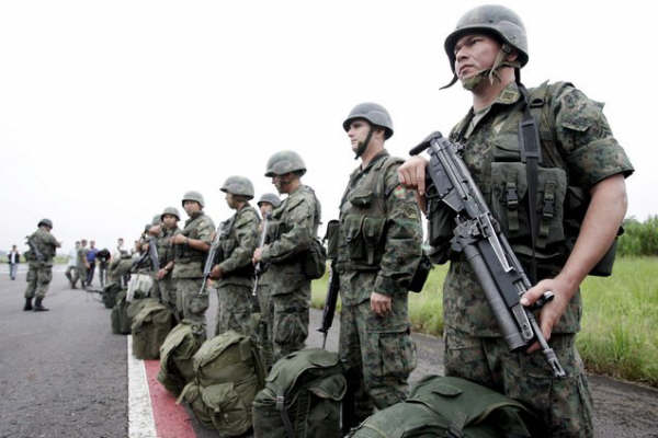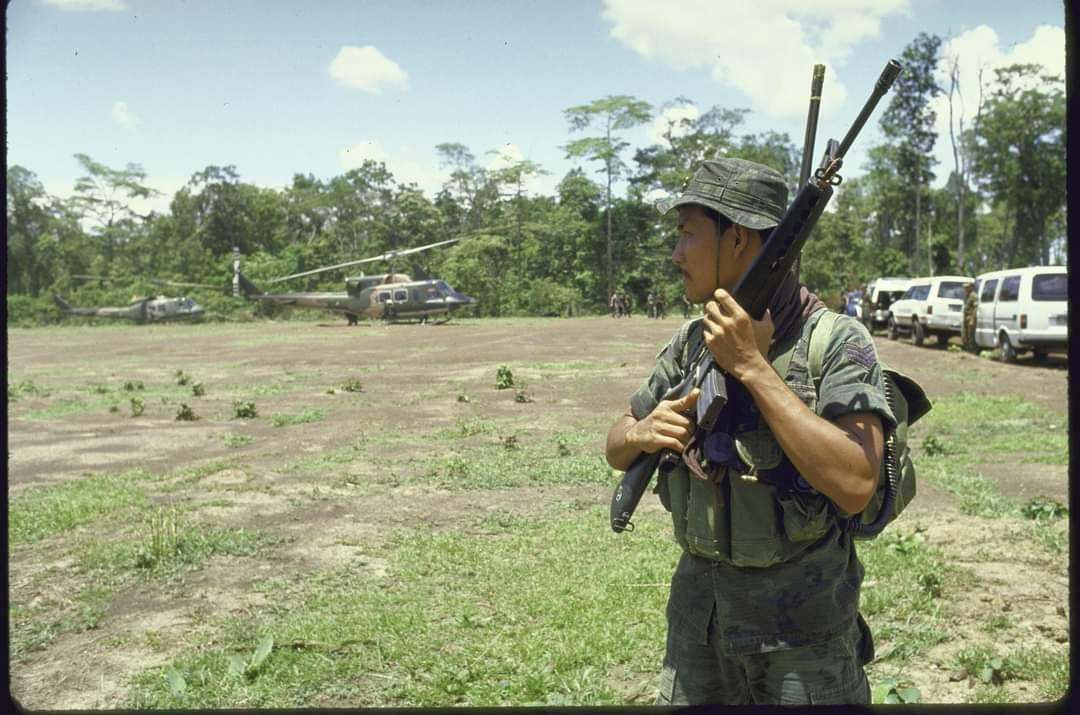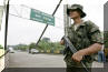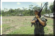2002年12月在圣萨尔瓦多发生的一次骚乱中,一名在屋顶上警戒的警察,手上的是HK33K。