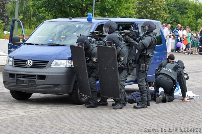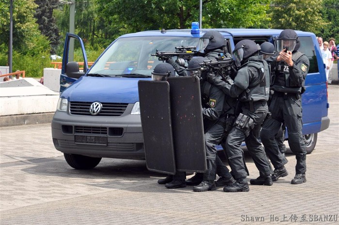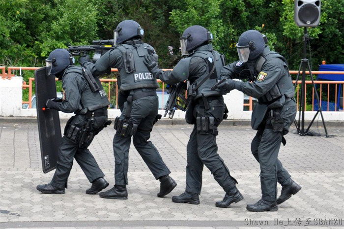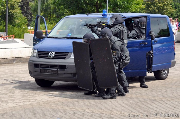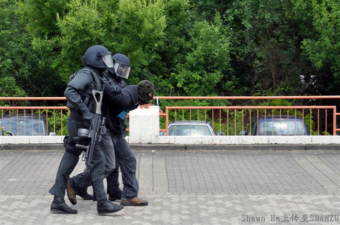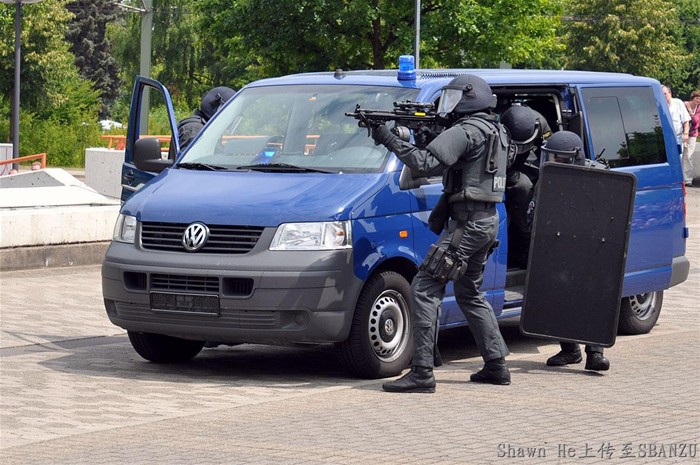 德国某队SEK在公开开放日上进行的表演,这把HK33更换了SIG枪托,而且使用了较少见的50发HK弹鼓