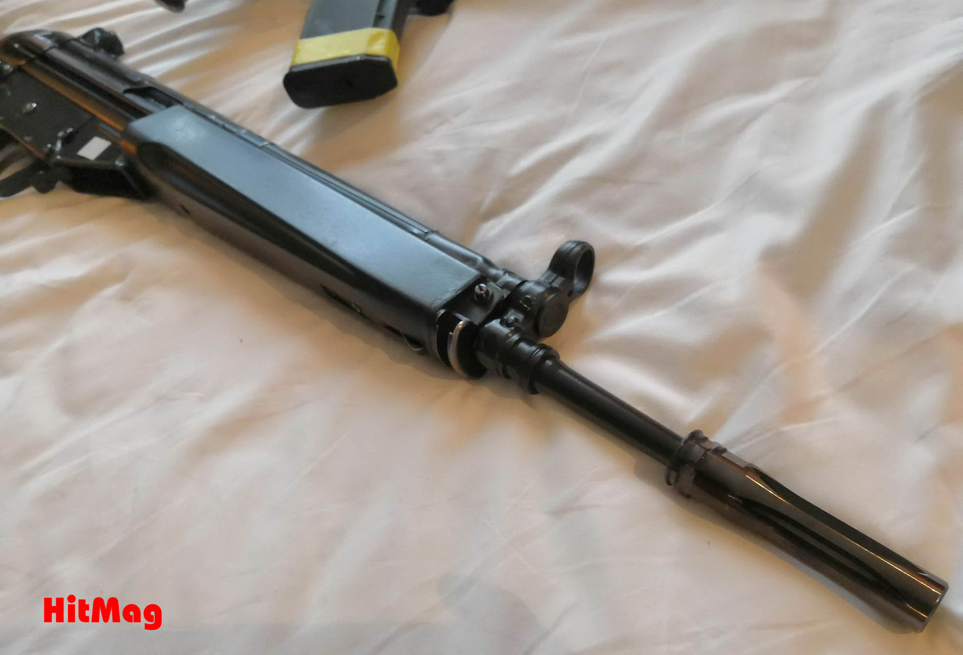 HitMag的朋友@猪兜2019年在泰国靶场玩到的一把HK33,这把枪安装了一个比较长的消焰器