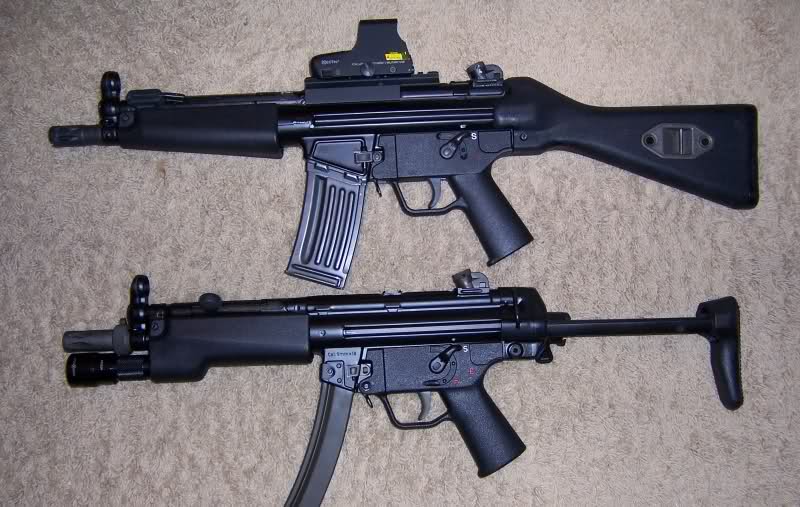 安装SureFire战术灯护木的HK53(下)与MC51(上)