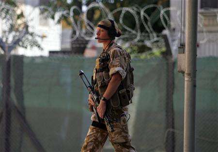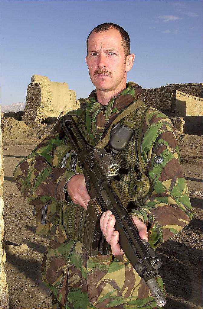 在阿富汗的一名SAS展示手头上的各种武器,包括HK53和G3K