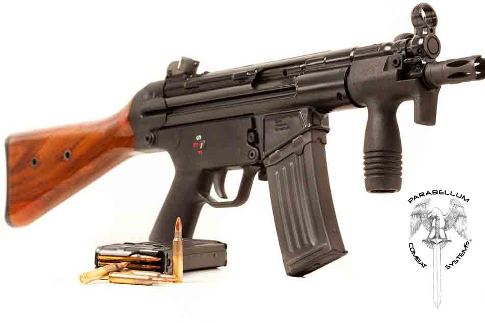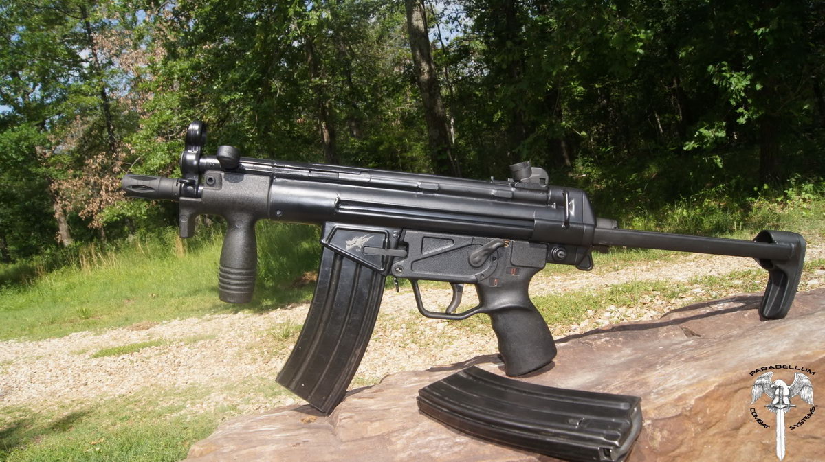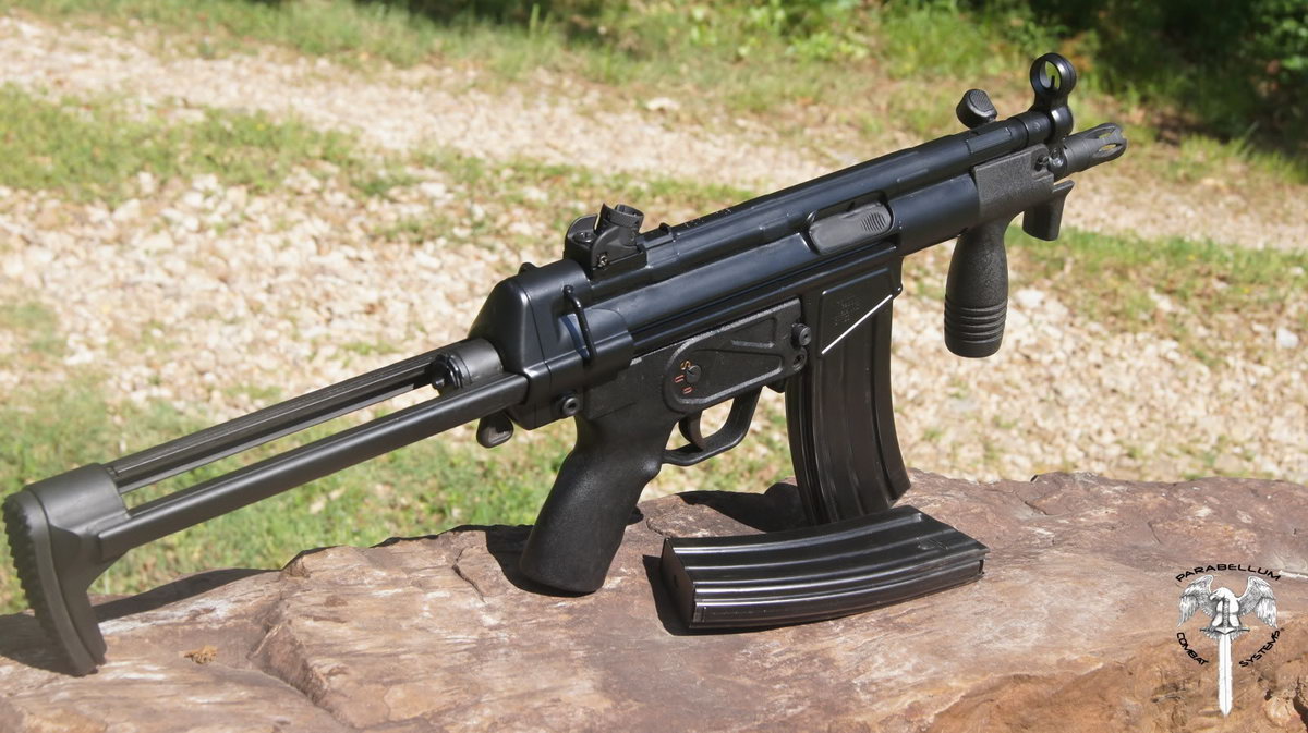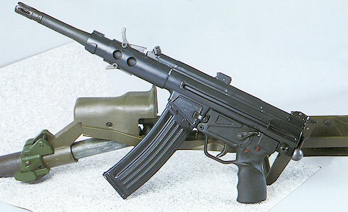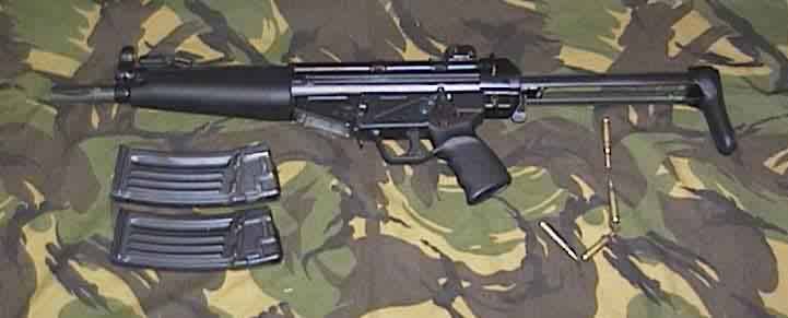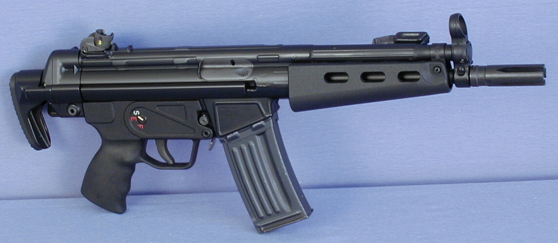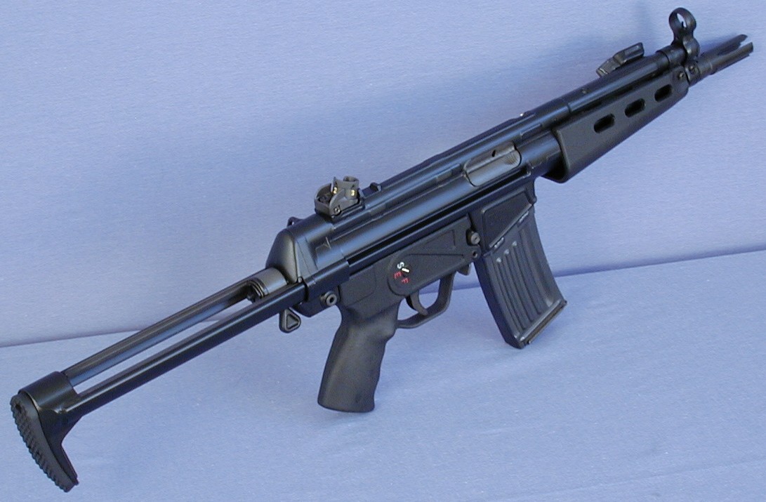 这是加长枪管、只可半自动发射的HK53,枪管长度加到16英寸以上以避免进入NRA限制武器的定义