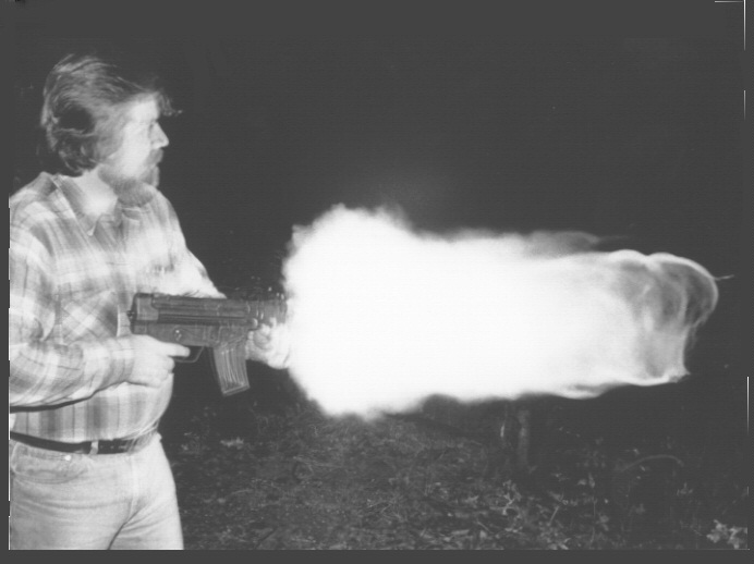由于枪管过短,发射药不能在枪管内充分燃烧,因此枪口的火焰特别大。这是步枪弹使用短枪管发射时的通病,在夜间射击中犹为严重。