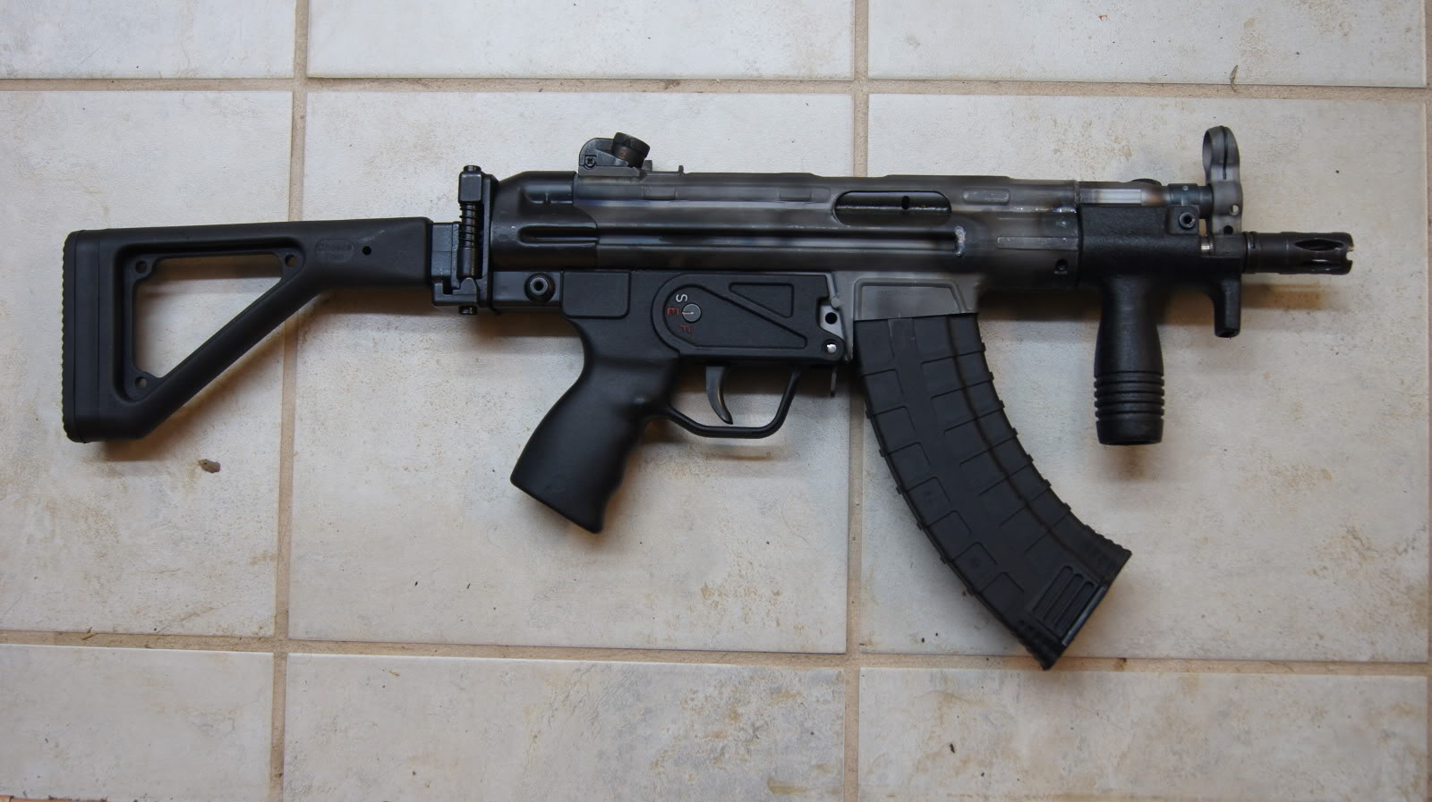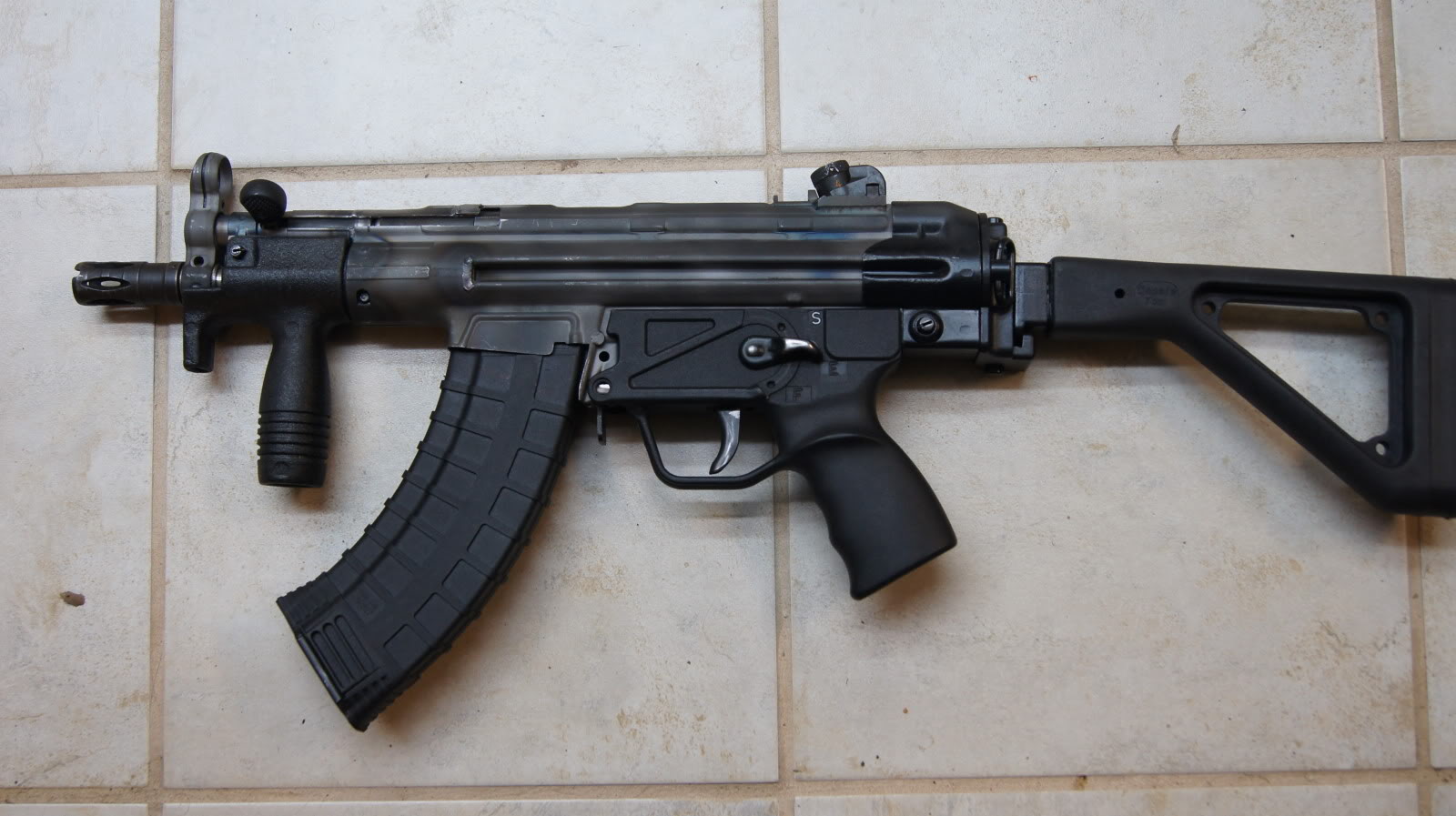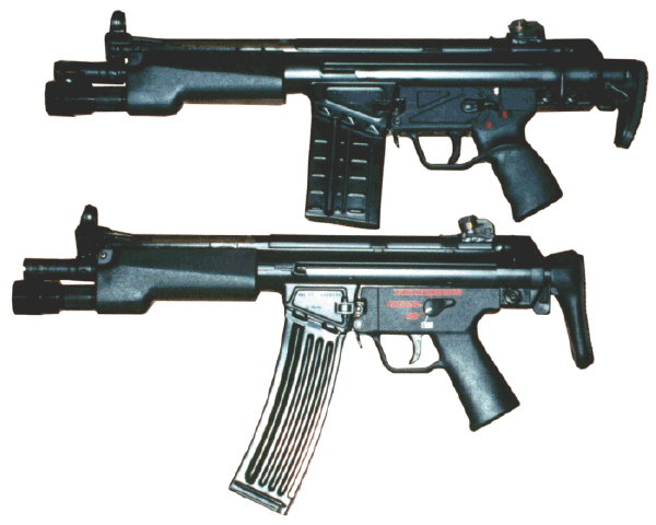 看起来很像HK53K,其实是用土耳其HK33机匣改装成7.62×39口径的冲锋枪