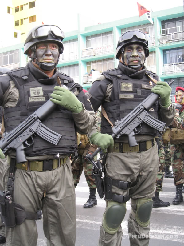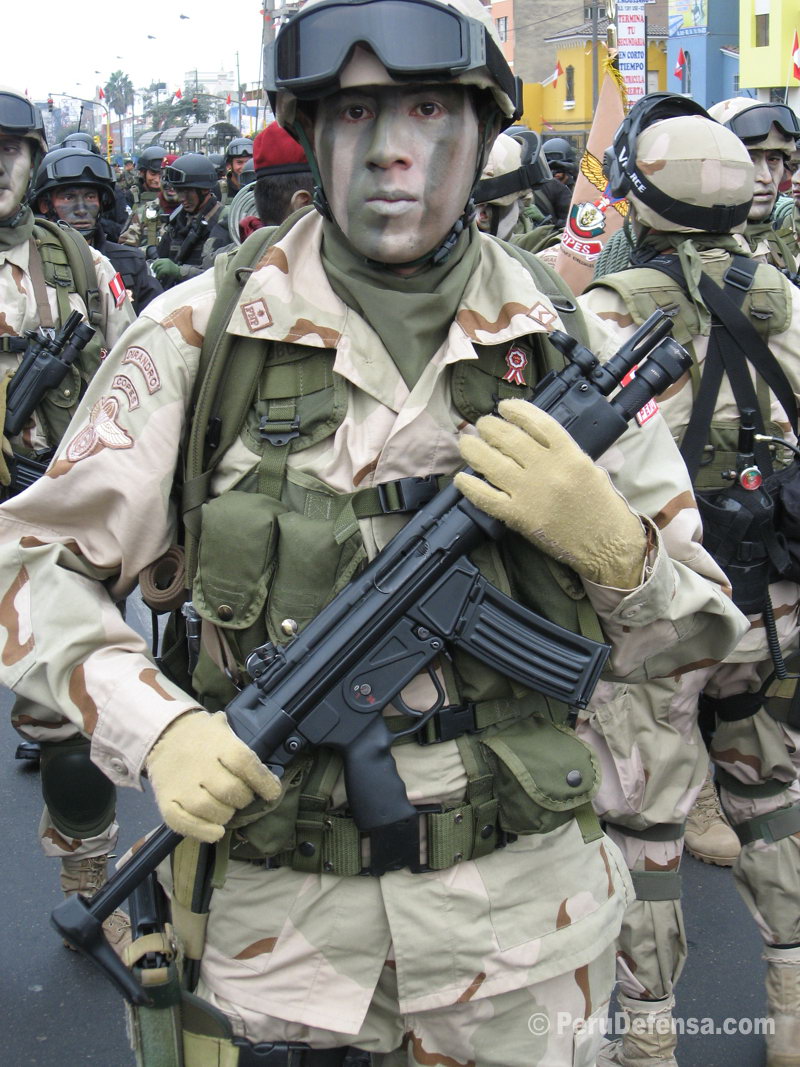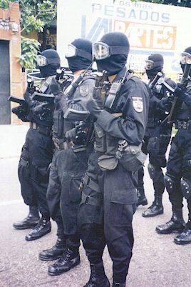 受阅中的萨尔瓦多GRP(反应警察小组——Reaction Police Group),前排警官手中的是HK53A3,后排警官手中的是MP5SD。