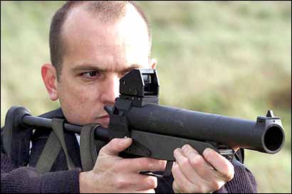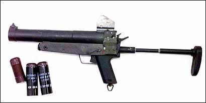 这是英国装备的L104A1,除了发射37mm防暴弹外,还把立框式表尺改成一个L18A1反射式瞄准镜