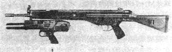 ![]() 挂在G3步枪护木下的HK69 |