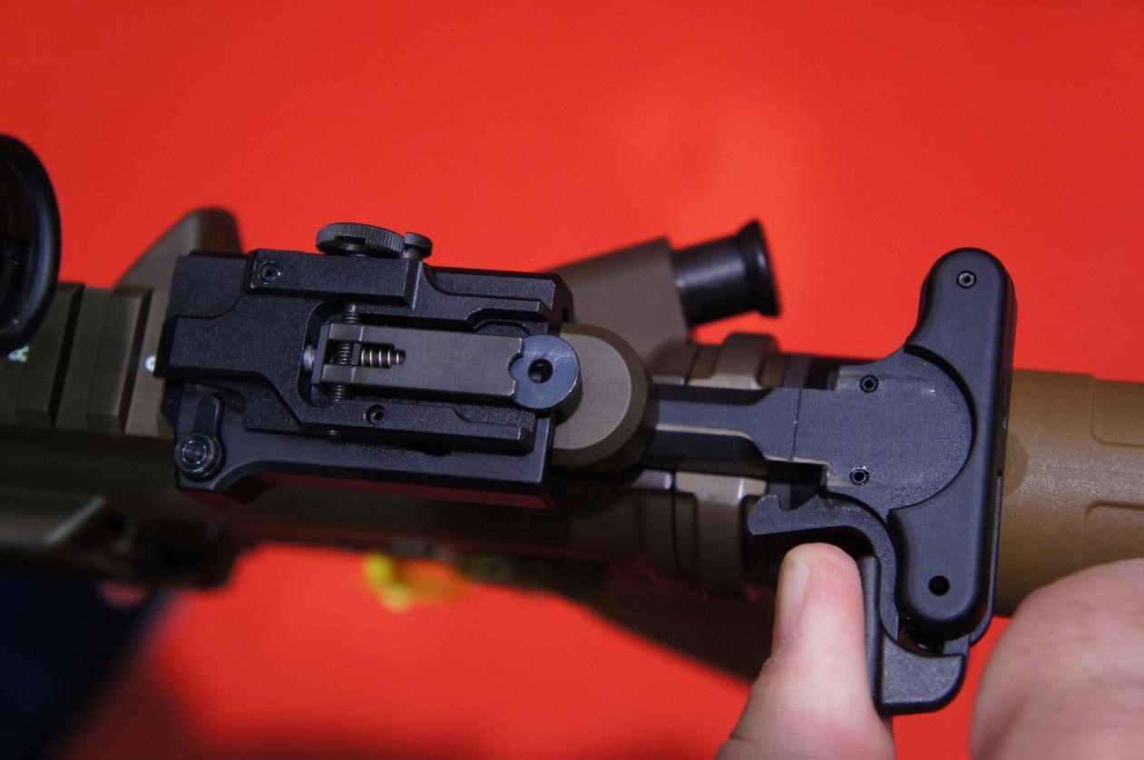 HK416A5的机械瞄具和标准瞄具不同,改用新的可折叠后备机械瞄具