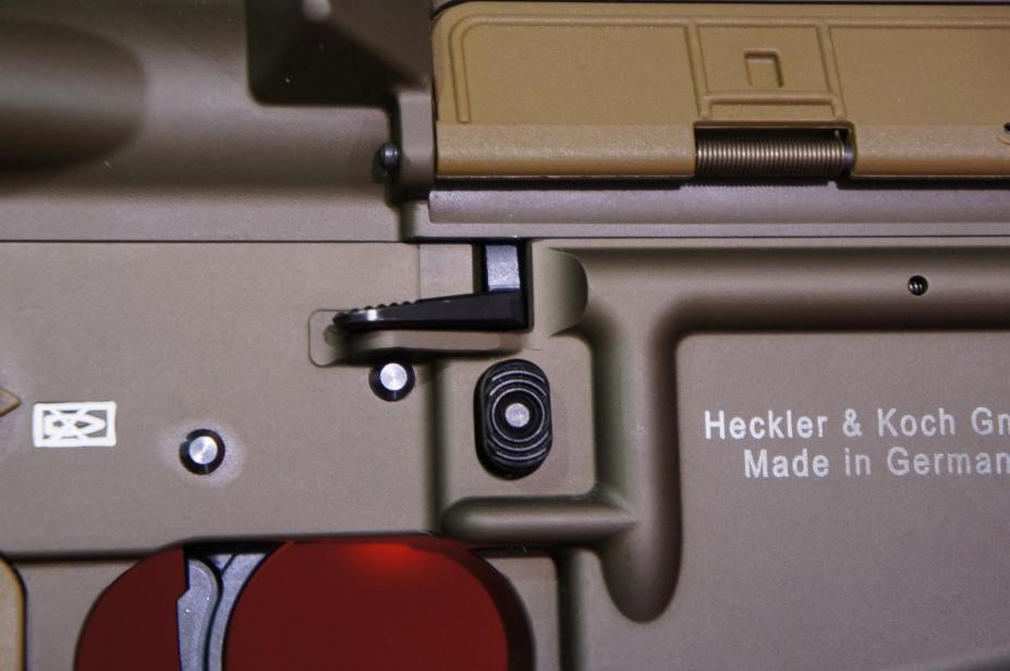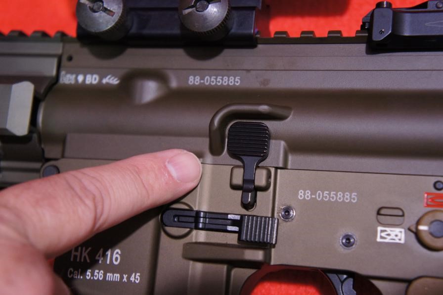 2012年初次公布的HK416A5的细节,此时的弹匣释放钮、双侧空仓挂机释放杆等只有单侧
