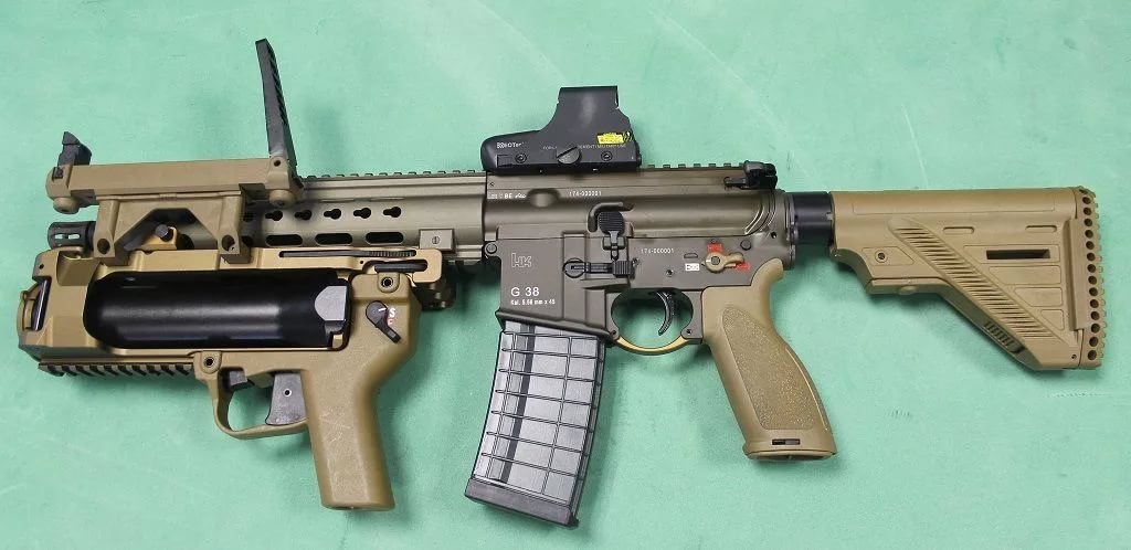![]() 同样是更换HKey护木的G38,下挂GLM榴弹发射器 |