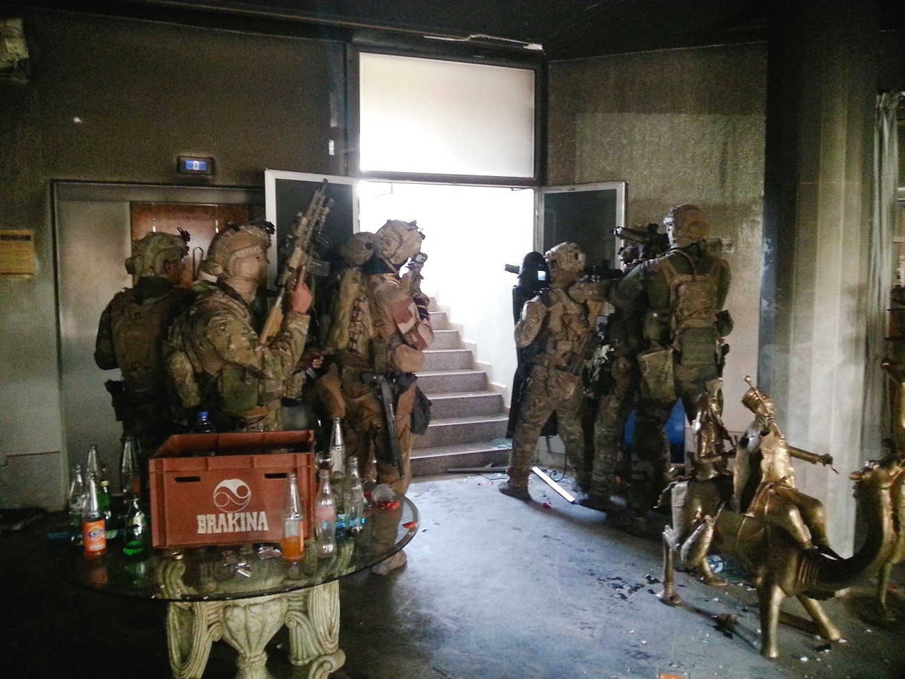 2016年1月中布基纳法索人质事件中的法国特种部队使用了HK416A5,最右图是在外围配合他们行动的美军三角洲特种部队用的是旧的HK416(安装SMR护木)