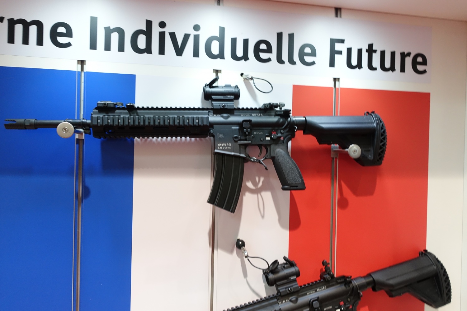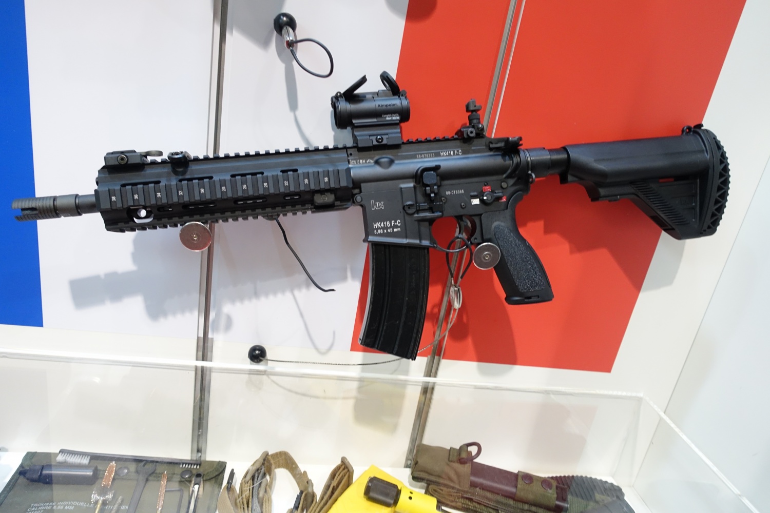 HK416F是基于HK416A5,针对法国军方的要求略作调整的法军型。作为下一代的制式步枪(ALF计划),法国在2016年向HK订购了93,080支HK416F以取代FAMAS,其中包括标准型(14.5英寸枪管的HK416F-S)共38,505支,短枪管型(11英寸枪管的HK416F-C)共54,575支,总价1.68亿欧元(约1.77亿美元,或12.3亿元人民币)。这些HK416F将于2017年到2028年之间交付完成,2022年需要交付订单总数一半的HK416F。HK公司在2017年已经交付给法军首批5,000支HK416F步枪。法军还会购买10,767件GLM 40mm(法国型为HK269F)榴弹发射器。另外HK还将推出其民用型MR223F。HK416F从HK416A5改进而来,但是机械瞄具和HK416A5不同,而枪托更换为早期的HKE1枪托,而不是新的,消焰器为三叉形消焰器。而光学瞄具将会继续使用法军现役的Scrome J4 4x瞄具。
