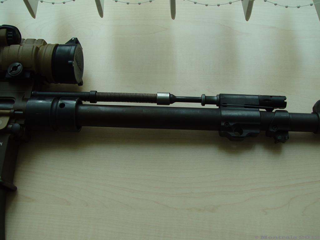 HK416A5的复进簧管固定箍比标准HK416的固定箍更粗,强度更高