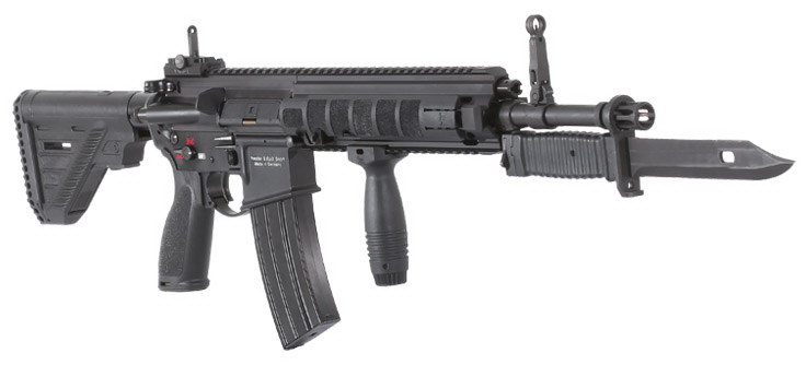 葡萄牙特种部队装备的HK416A5,枪管与法国版HK416F相似,但刺刀卡笋在枪管上方