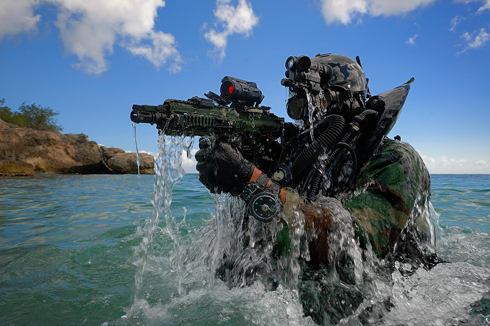 马亚西亚吉兰丹州的苏丹穆罕默德五世的贴身保镖所使用的HK416C及捷克蝎式EVO冲锋枪
