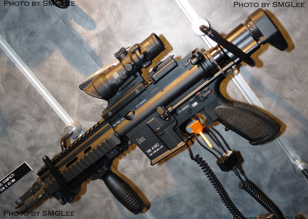 HK416C是在2009年初次公布的,当时据传是应英国特别空勤团(SAS)的要求研制的,在2010年开始列入HK公司官方网站的产品目录中。其实SAS并没有正式发布这项产品要求,只是某个消息指出他们可能需要一种紧凑的突击步枪,于是HK公司就研制了这种最短的HK416。但SAS并没有采购HK416C。