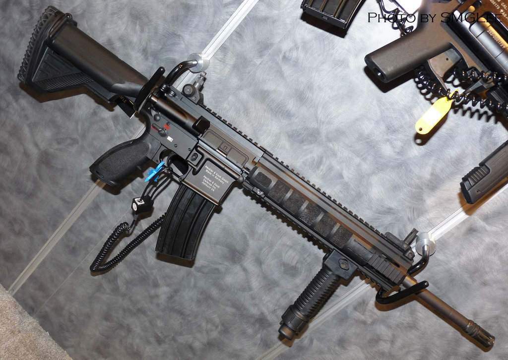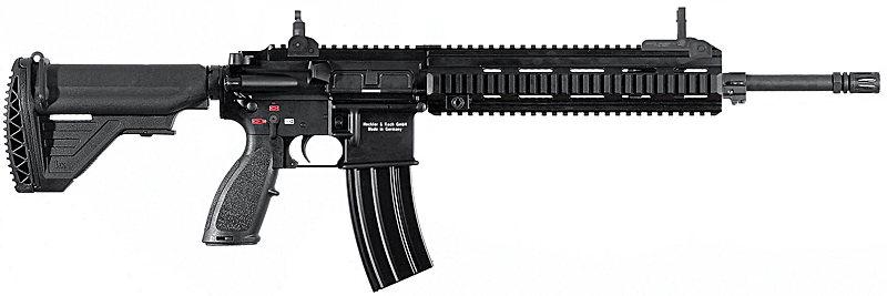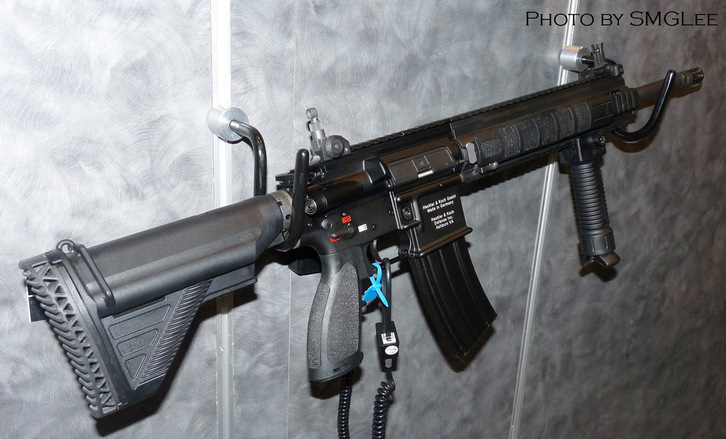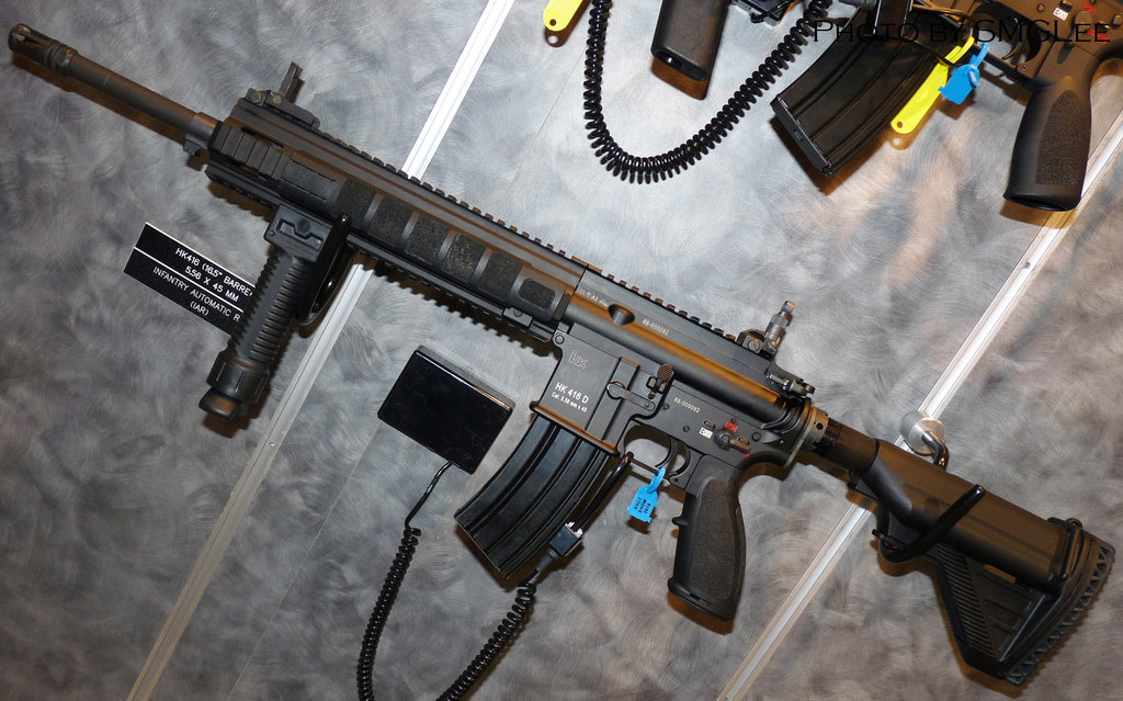 HK公司参与美国海军陆战队的IAR竞标的样枪是采用16.5英寸(约420mm)枪管的HK416。与其他IAR样枪不同的是,HK IAR没有其他专门的改进项目(例如像FN IAR那样采用两种待击方式,或像Colt IAR那样采用大型散热器),然而HK IAR却是所有竞争型号中重量最轻的,空枪重7.9磅(约3.6kg),而且操作与M16相同,普通士兵不需要专门训练就能熟练掌握,因为HK公司根本就是直接把HK416中其中一种卡宾型拿出来参加投标。在2009年12月2日的陆战队时报报道,HK IAR在此项目中中标了。在2010年5月,HK IAR被正式定型为M27,而且已经开始交付部队试用。