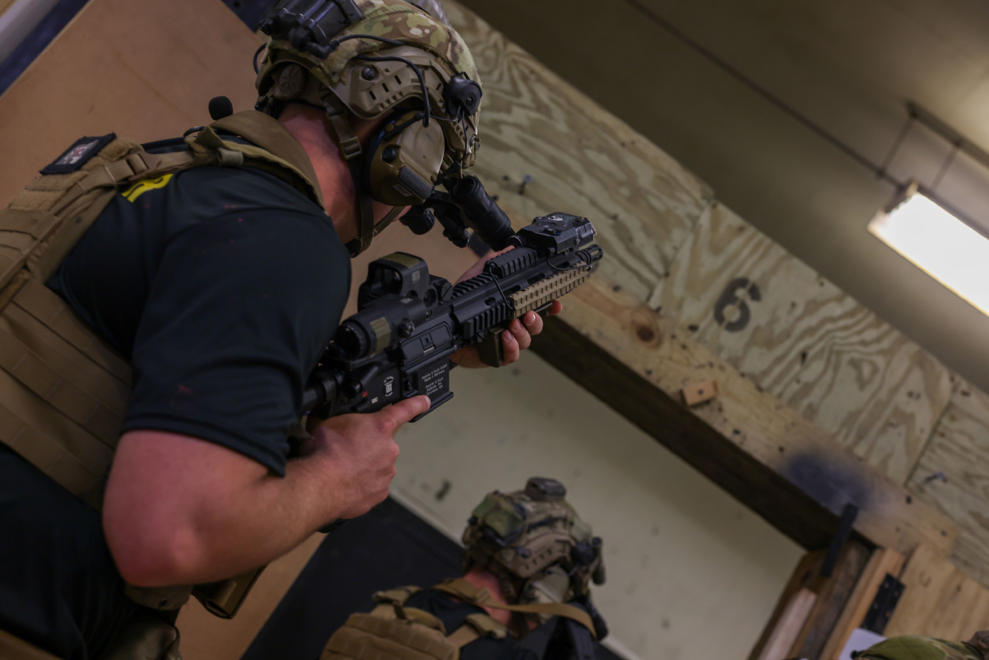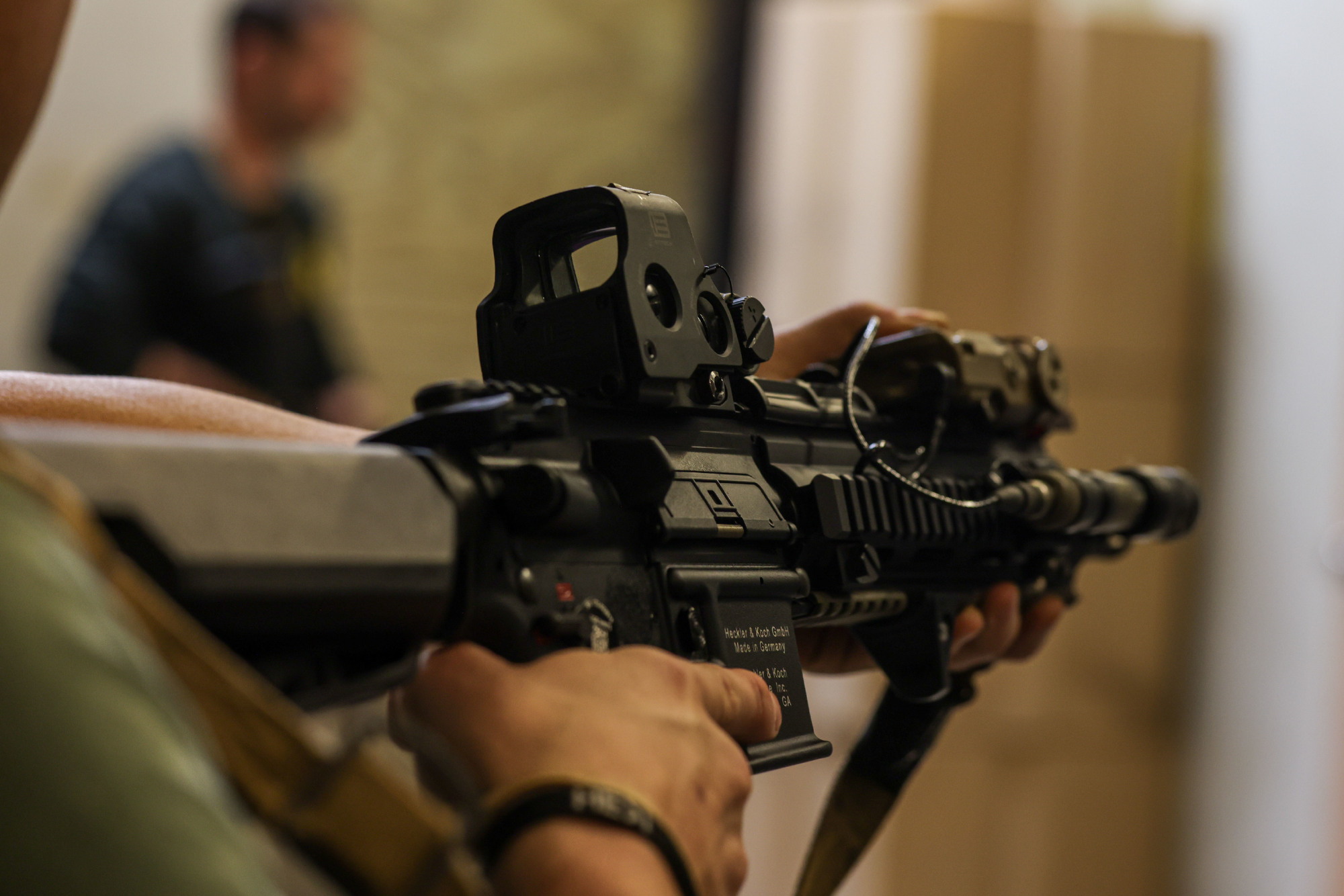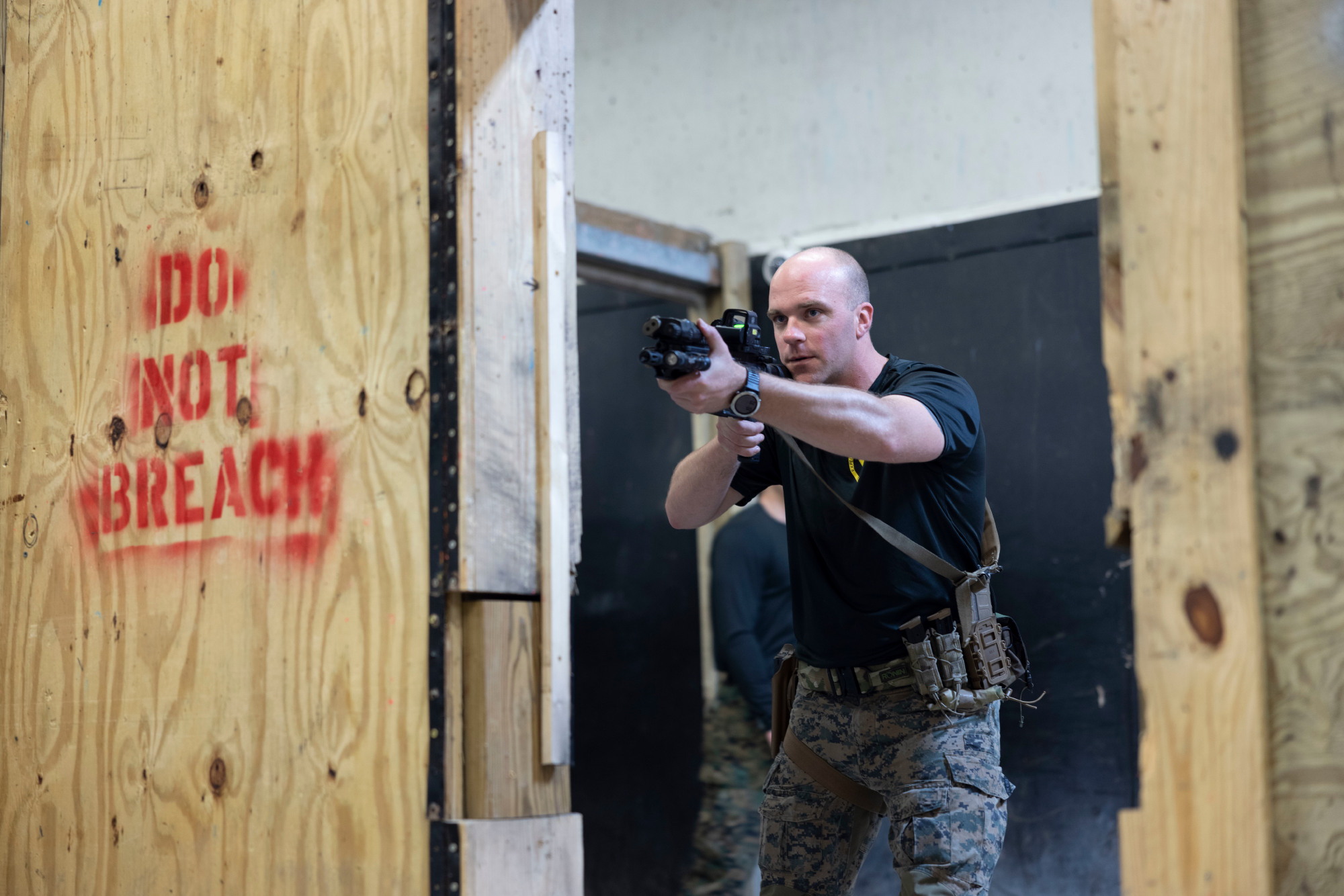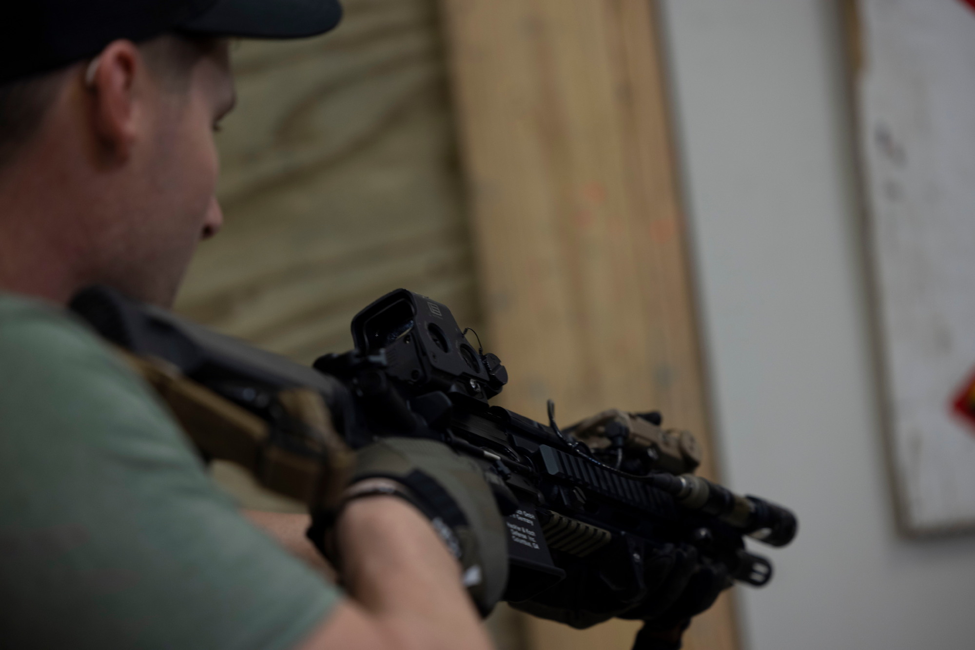 2023年正在使用M27 RWK进行CQB训练的第二海军陆战队远处军作战训练组教官