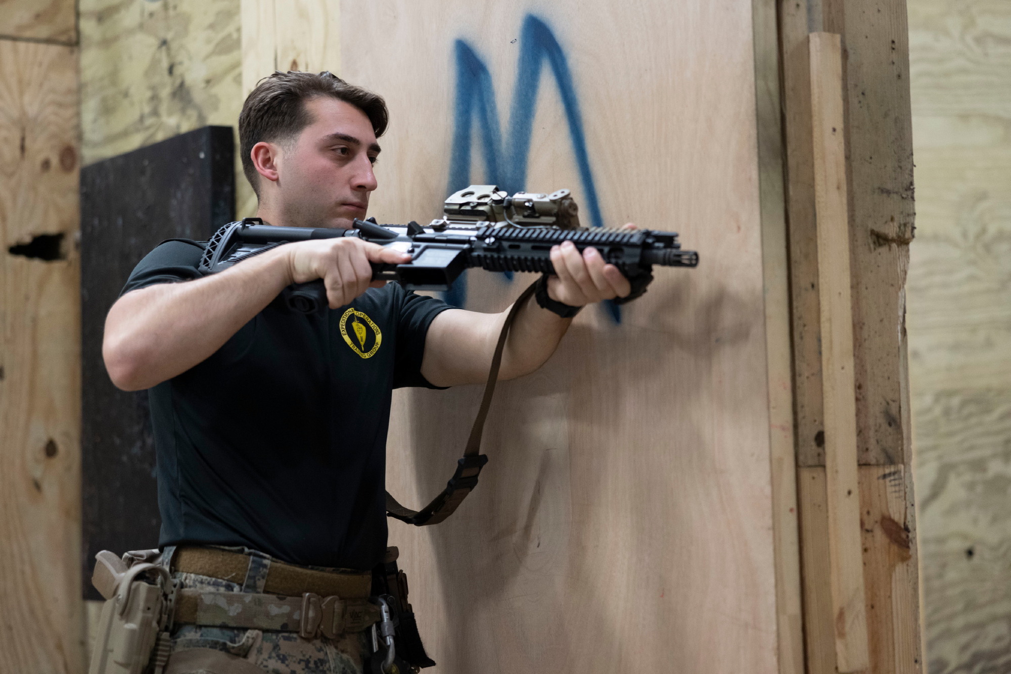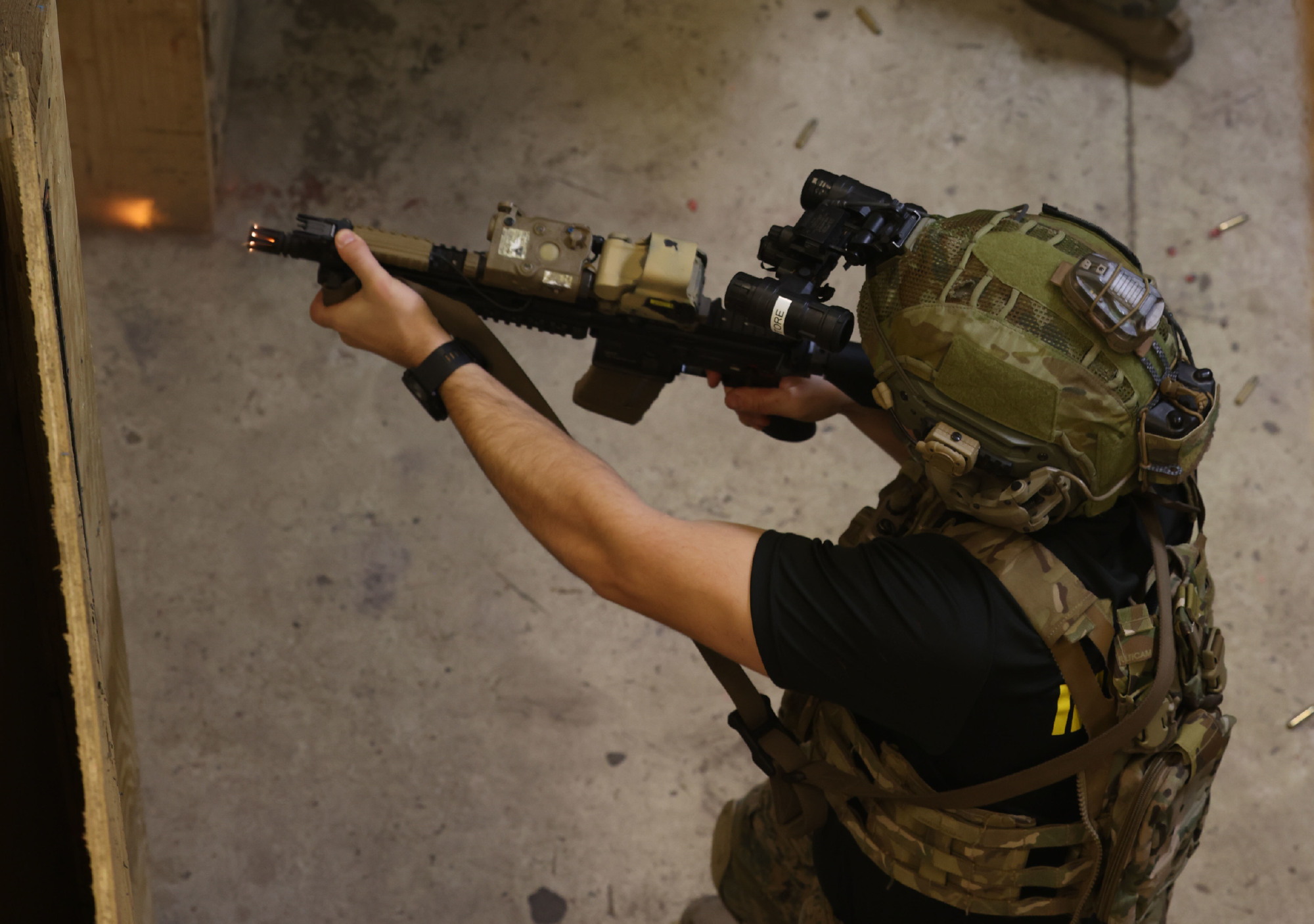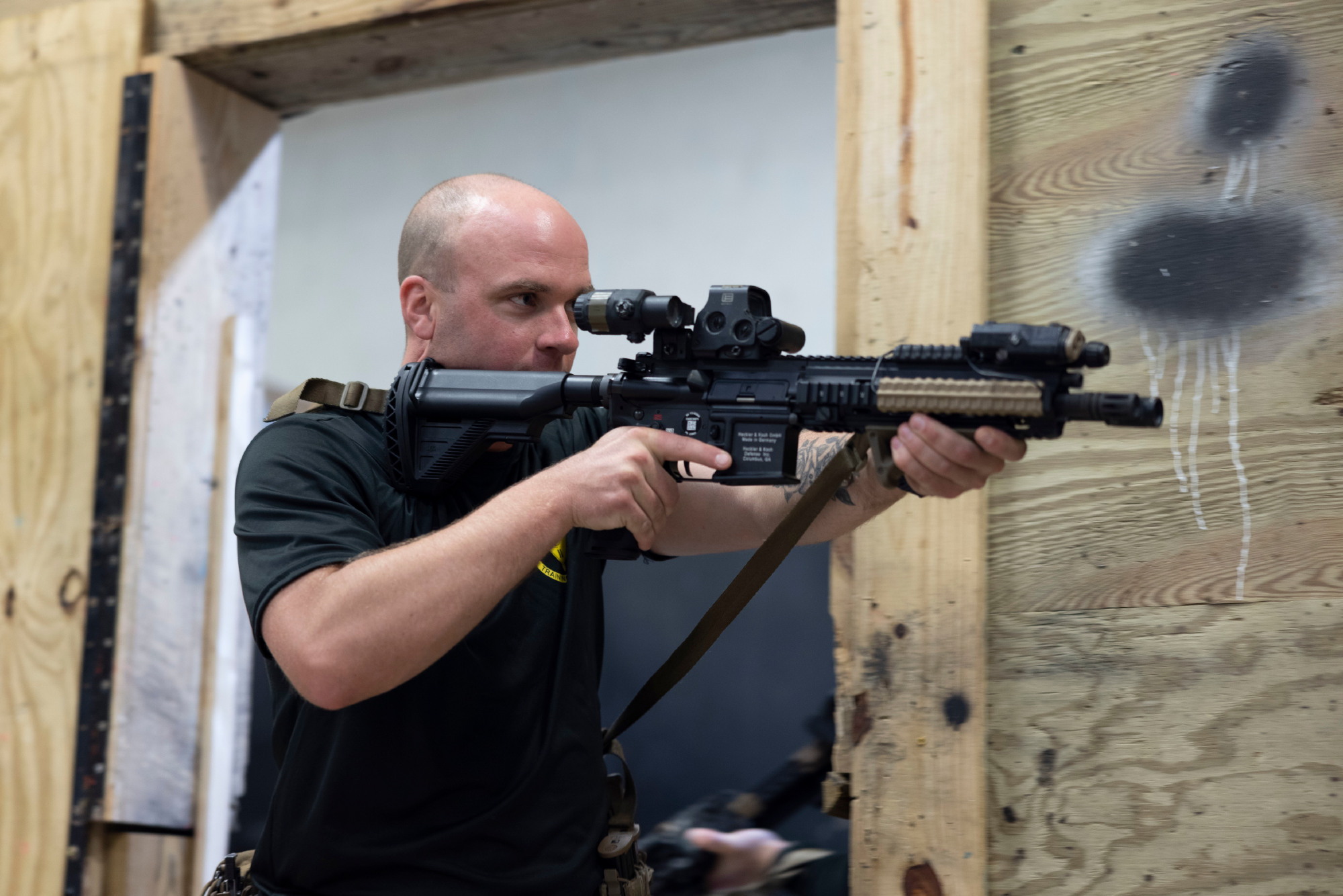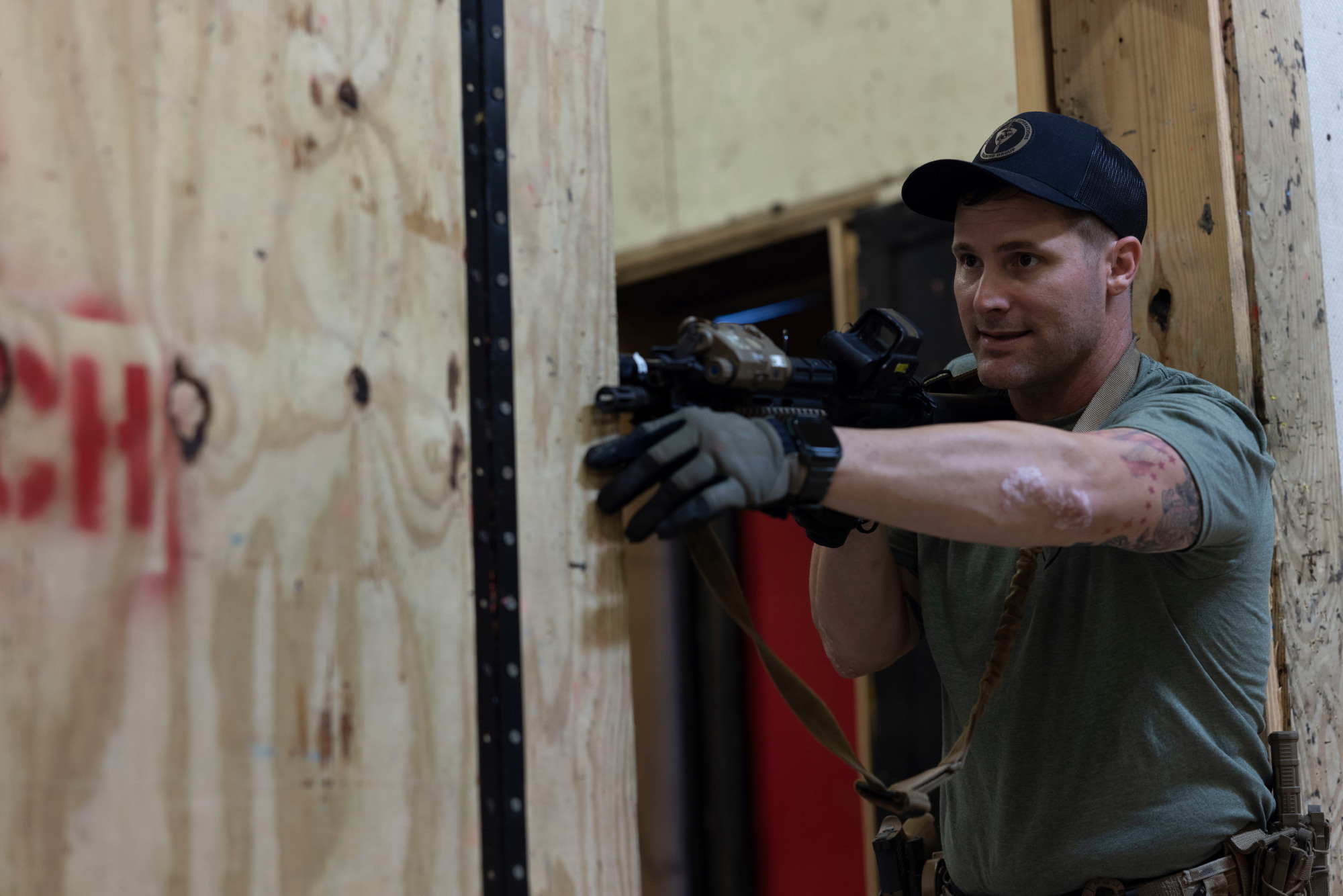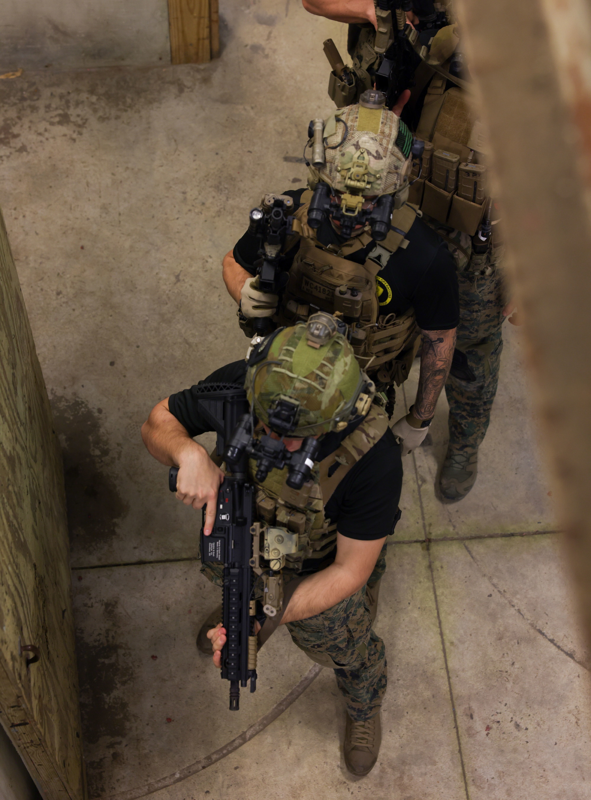 2023年正在使用M27 RWK进行CQB训练的第二海军陆战队远处军作战训练组教官