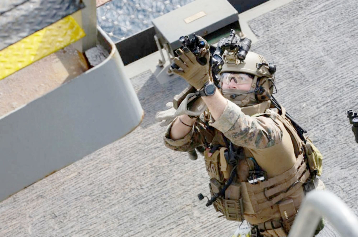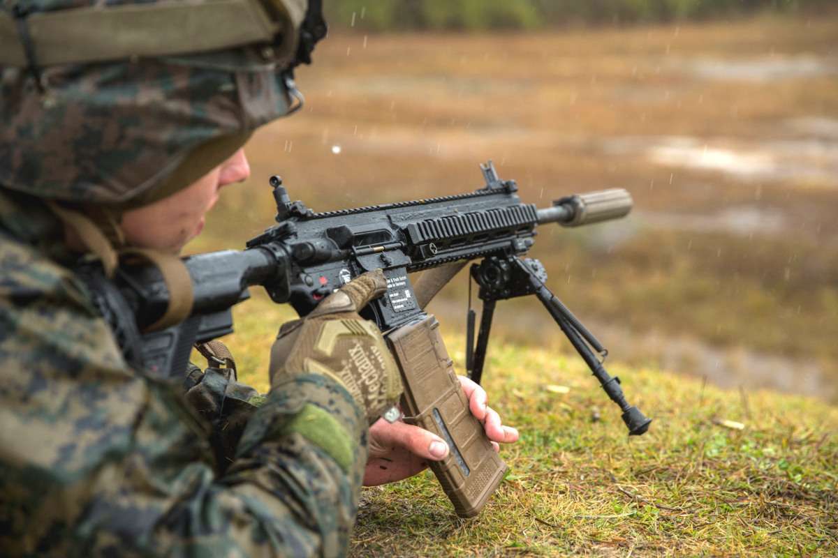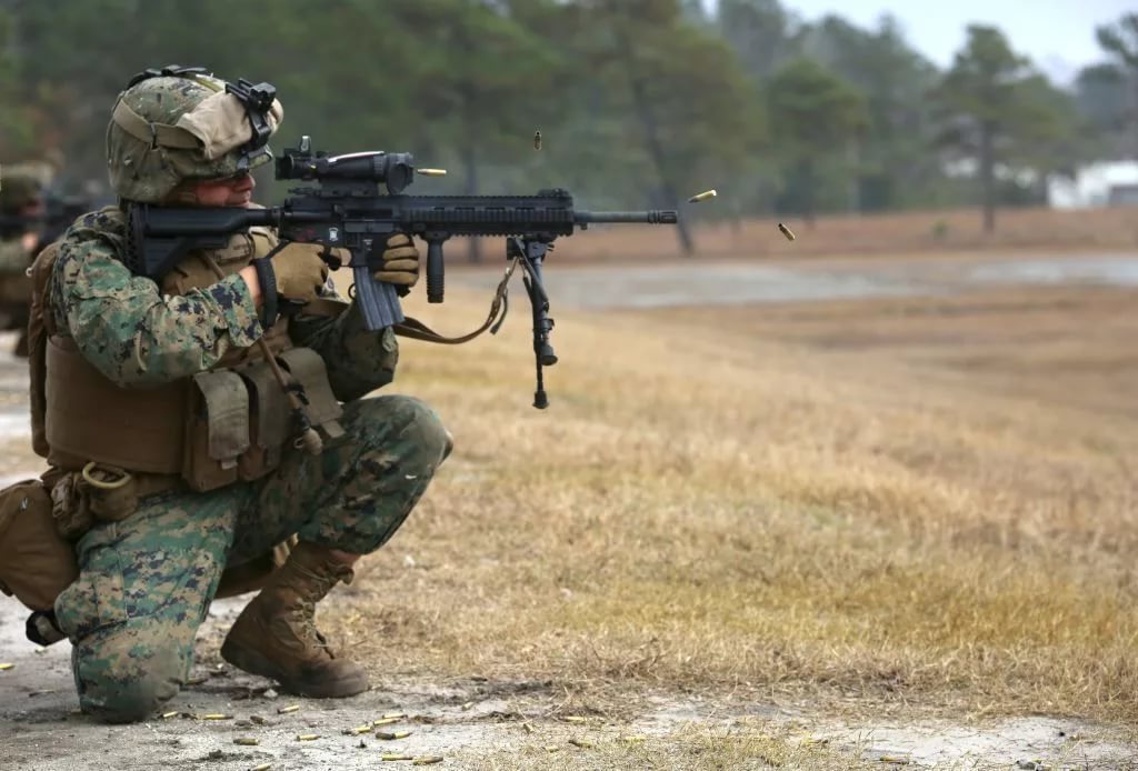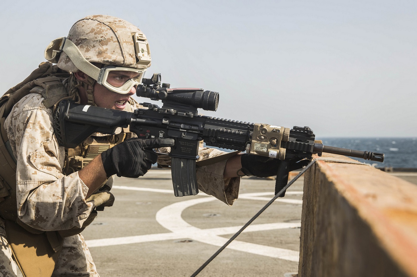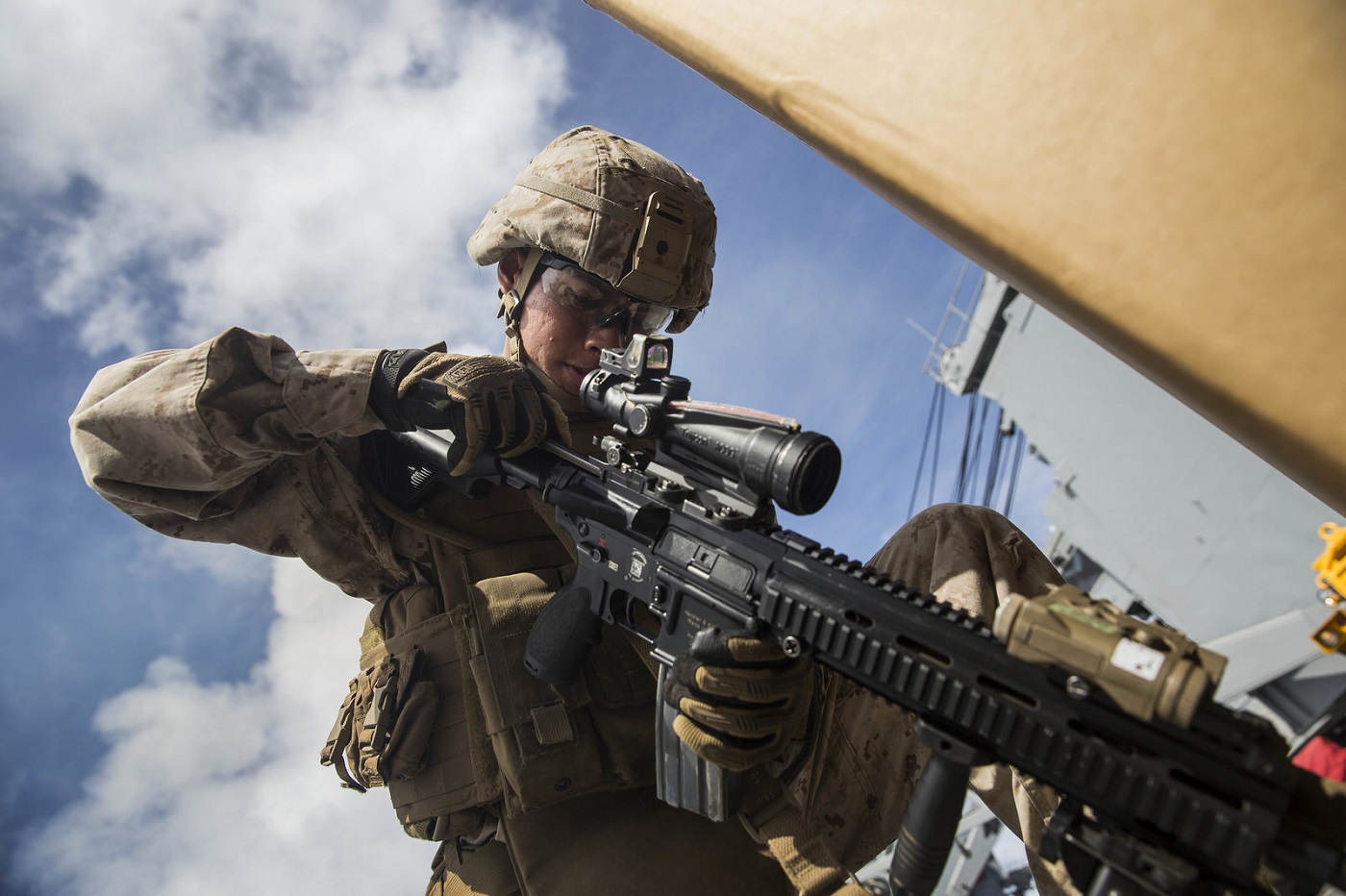 一张拍摄于2022年1月份的照片,在进行VBSS训练中使用M27 RWK的美军陆战队员
