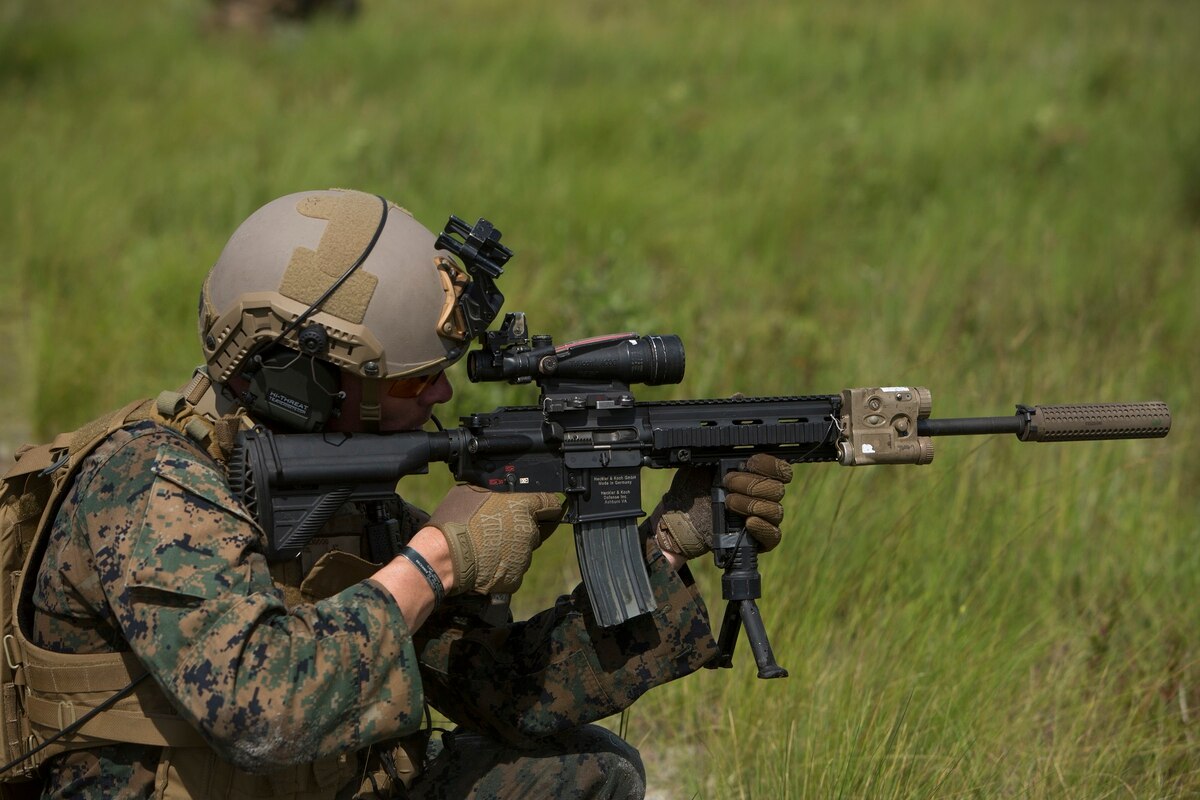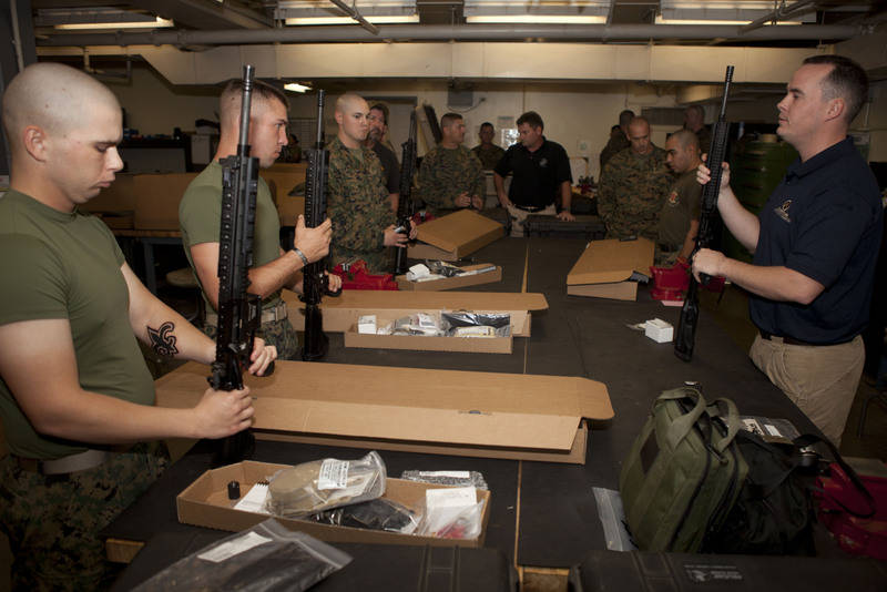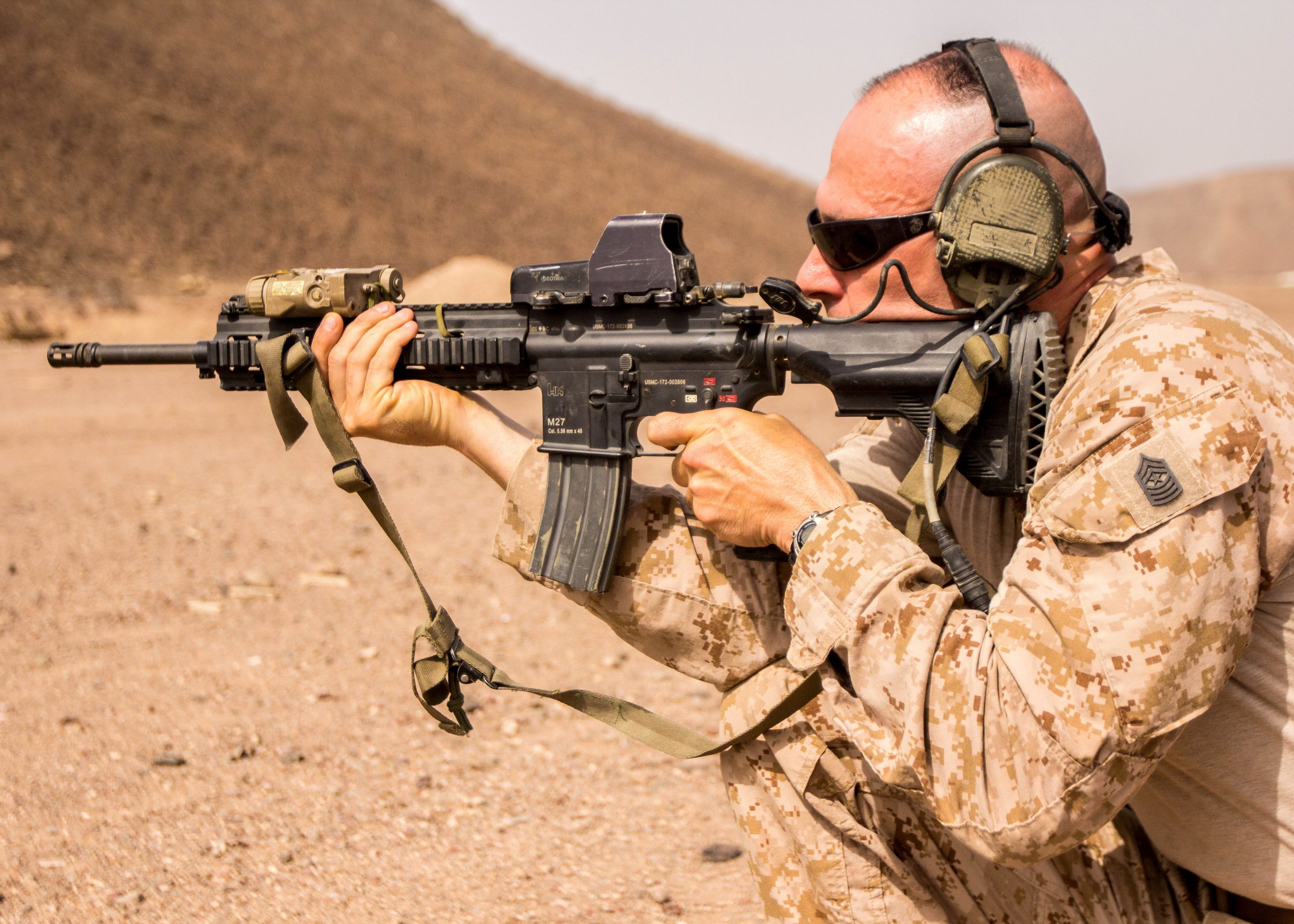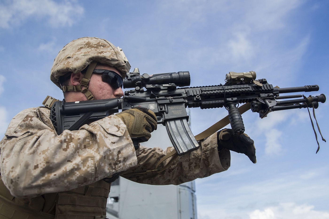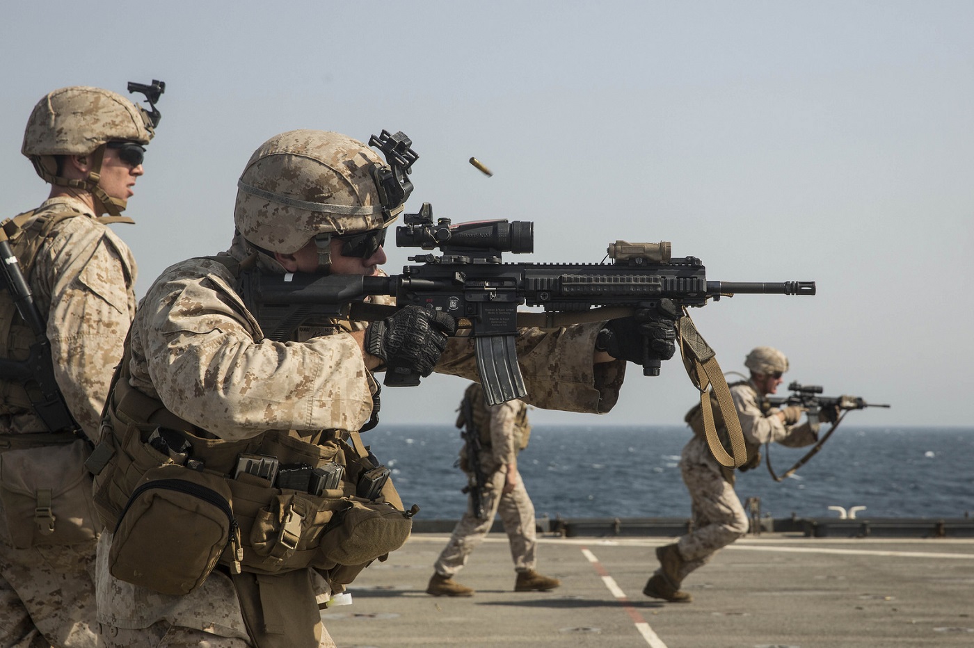 一张拍摄于2022年1月份的照片,在进行VBSS训练中使用M27 RWK的美军陆战队员
