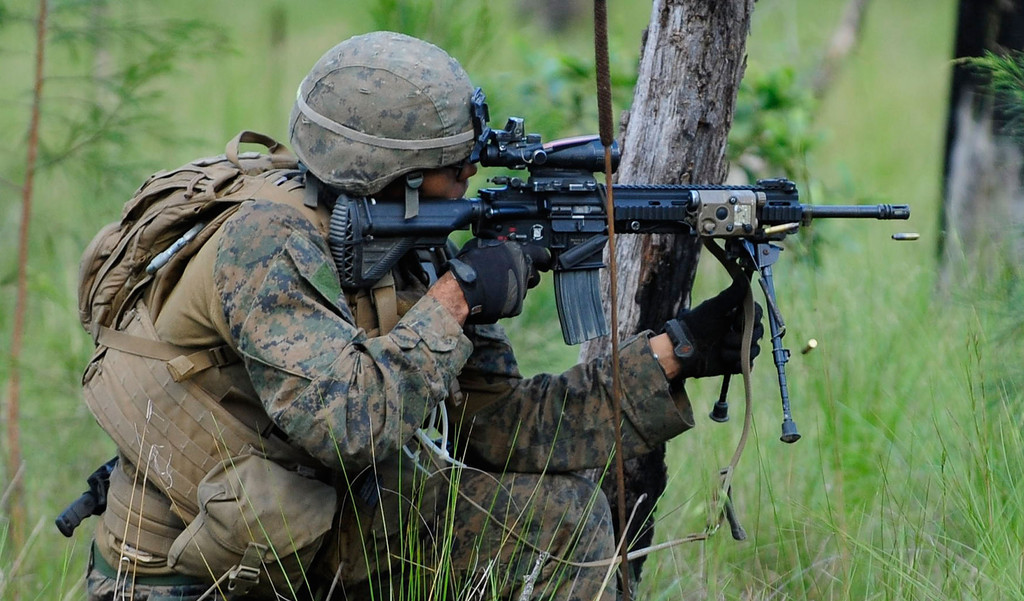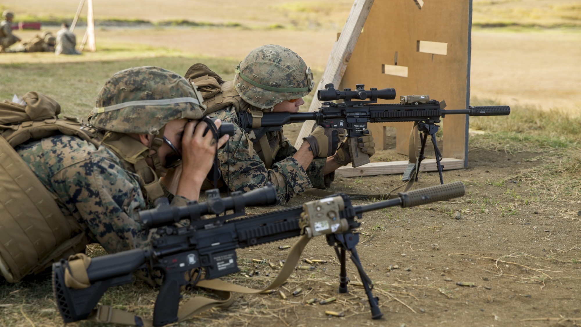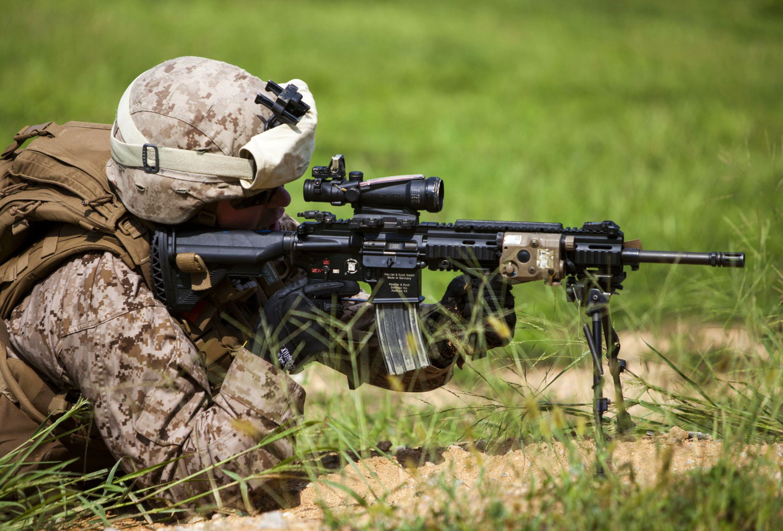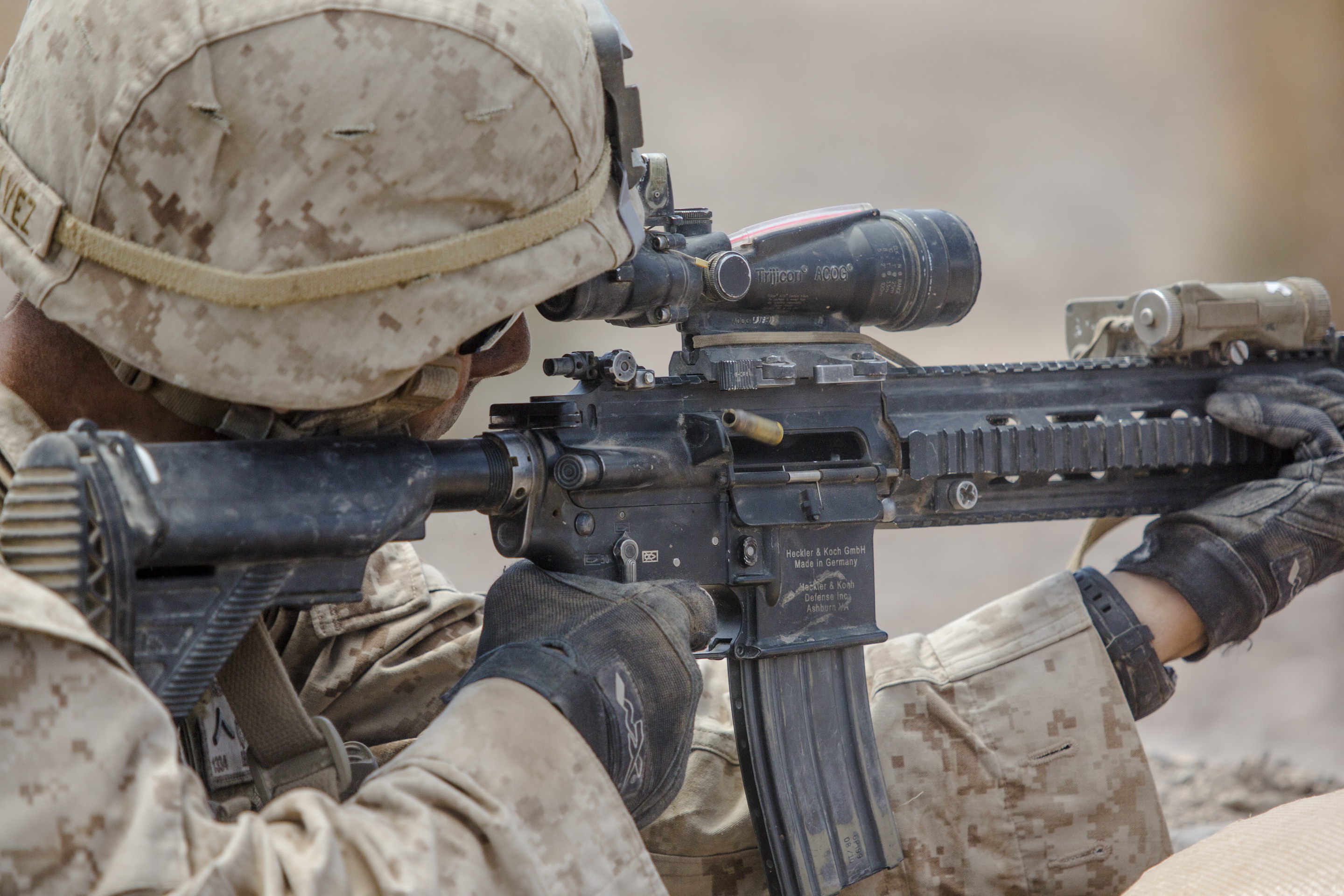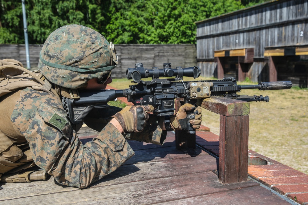 一张拍摄于2022年1月份的照片,在进行VBSS训练中使用M27 RWK的美军陆战队员