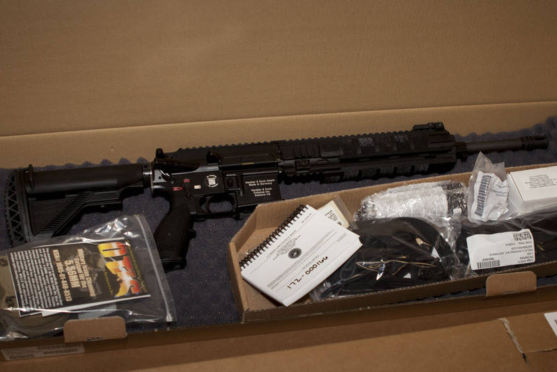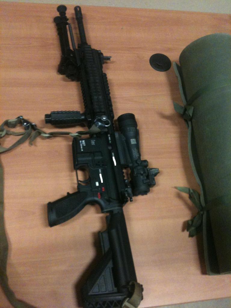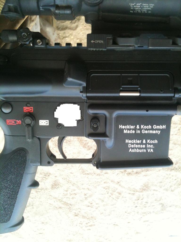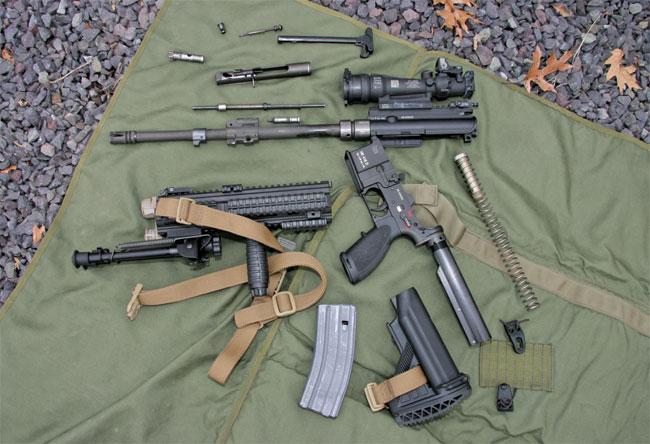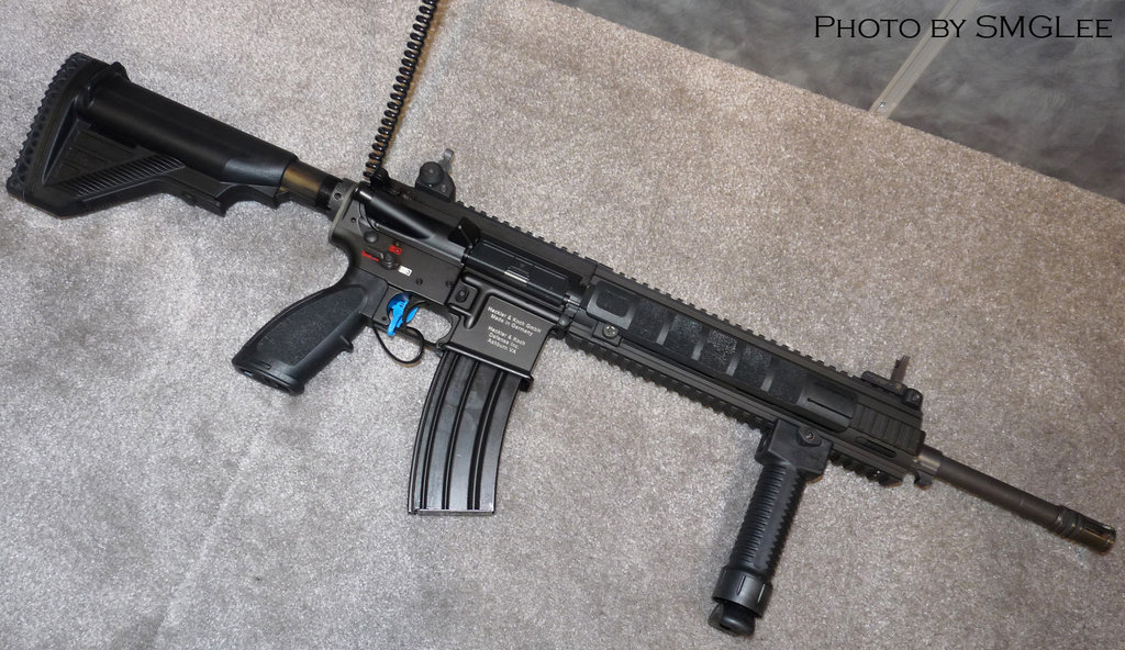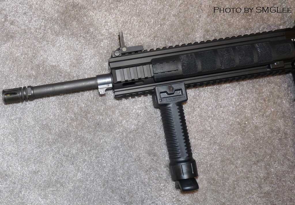 另一支分解的HK416,它有两个刺刀卡笋,可能是早期批次的HK416直接拿14.5英寸枪管所配的导气箍来组装