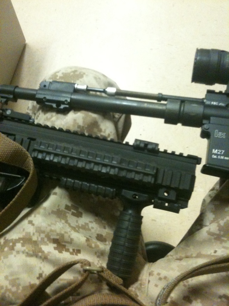 这是M27 IAR的护木,而M27 RWK的护木长度大致就到图中红线的位置