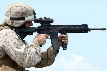 ![]() 枪口装上空包弹助退器的M27 IAR |