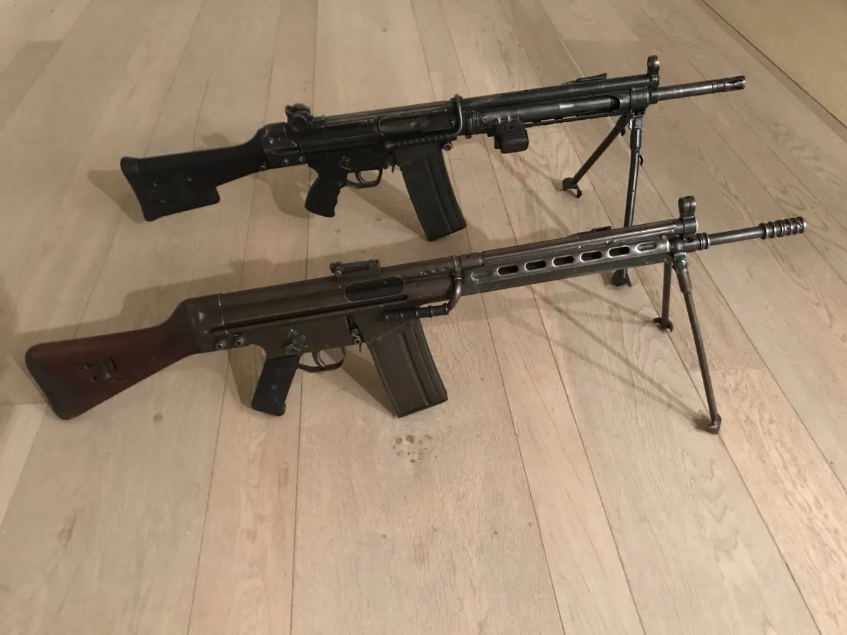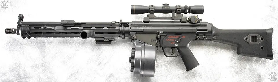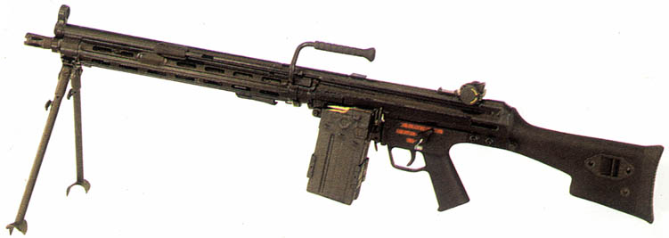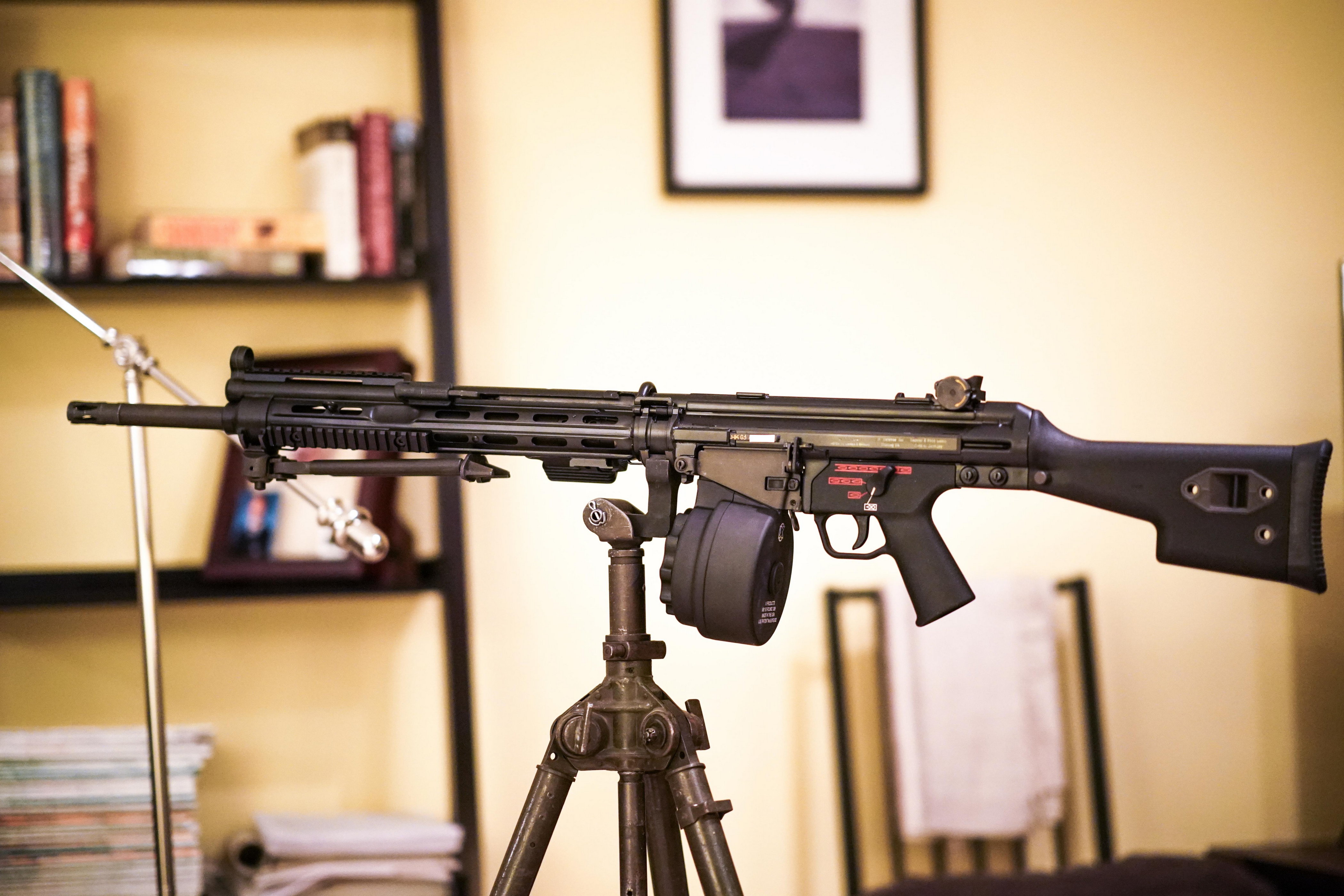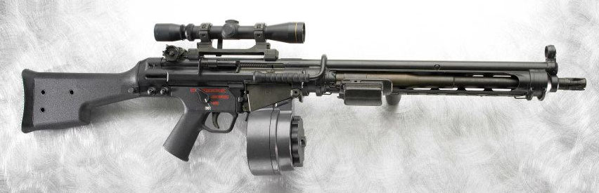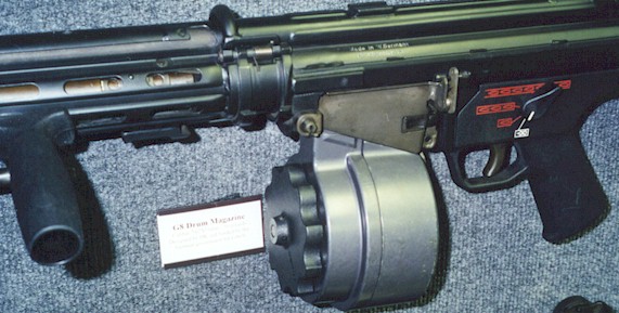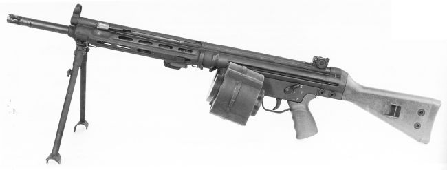 早期的HK11原型枪,弹鼓容量为80发,这个早期型号的枪管比较长,所以看起来有点像HK21
