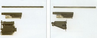 左图是HK21的枪机及供弹机构,右图为HK11的枪机及供弹机构