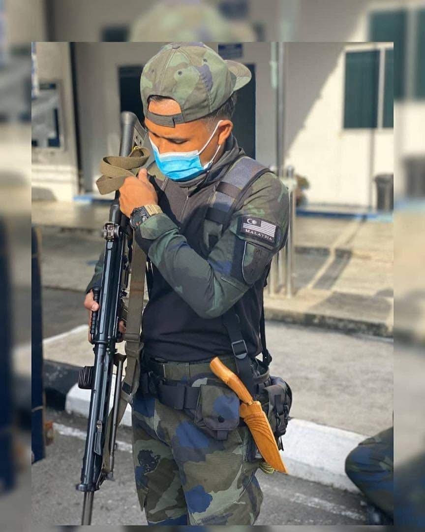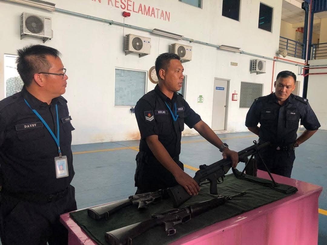 马来西亚林邦地区警察所装备的HK11E,注意他们的HK11上安装了比较长的560mm枪管