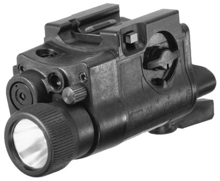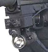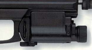在第1阶段中的LAM也是HK公司研制的,后来改为ITI公司(Insight Technology Inc.)研制和生产的LAM,ITI也是USP手枪的UTL的生产商。LAM是专门为夜战而设计的,可在套筒座下面的槽内滑动,在扳机护圈前用螺钉固定,用1.5V电池供电,防20米水深。第1阶段中的LAM有三种光源。第一种是发出强光的卤素灯,用于夜间捜索。在卤素灯前盖上一块红外滤光镜后只滤出肉眼不可见的红外光,可以增强被动式夜视镜的观察效果,而且不易被敌人察觉,当不使用的时候这块红外滤光镜可以收在LAM的侧面,前面的第1阶段HK SOCOM样枪图片中LAM侧面的圆形轮状物体估计就是这个红外滤光镜。第二种是红色的可视激光,第三种是肉眼不可见的红外激光,后者也是要通过被动式夜视镜才能看到瞄准点的光斑。