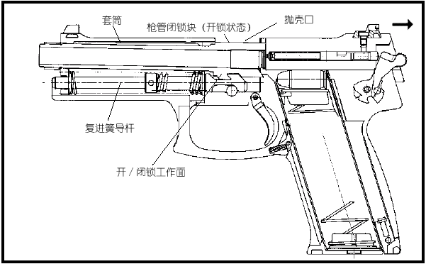 | 17 | buffer spring 缓冲簧 | 50 | decocking lever 待发解脱杆 |