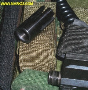 这是可以拧在Mk23枪管的螺纹上的消焰器,最初是为阿拉伯联合酋长国的沙漠部队设计的。有些阿联酋部队在公开市场上贩卖这种产品。在1997年,CCF公司(Capital City Firearms)开始美国生产销售这种产品。据CCF称,这种消焰器可以有效减少枪口焰,而且能降低后座力提高命中精度。在1999年9月又推出了改进型的消焰器。