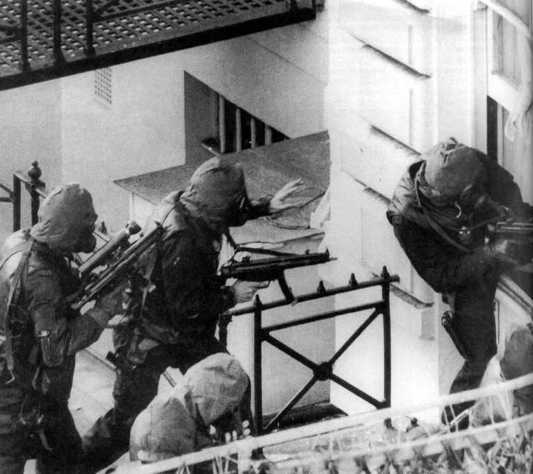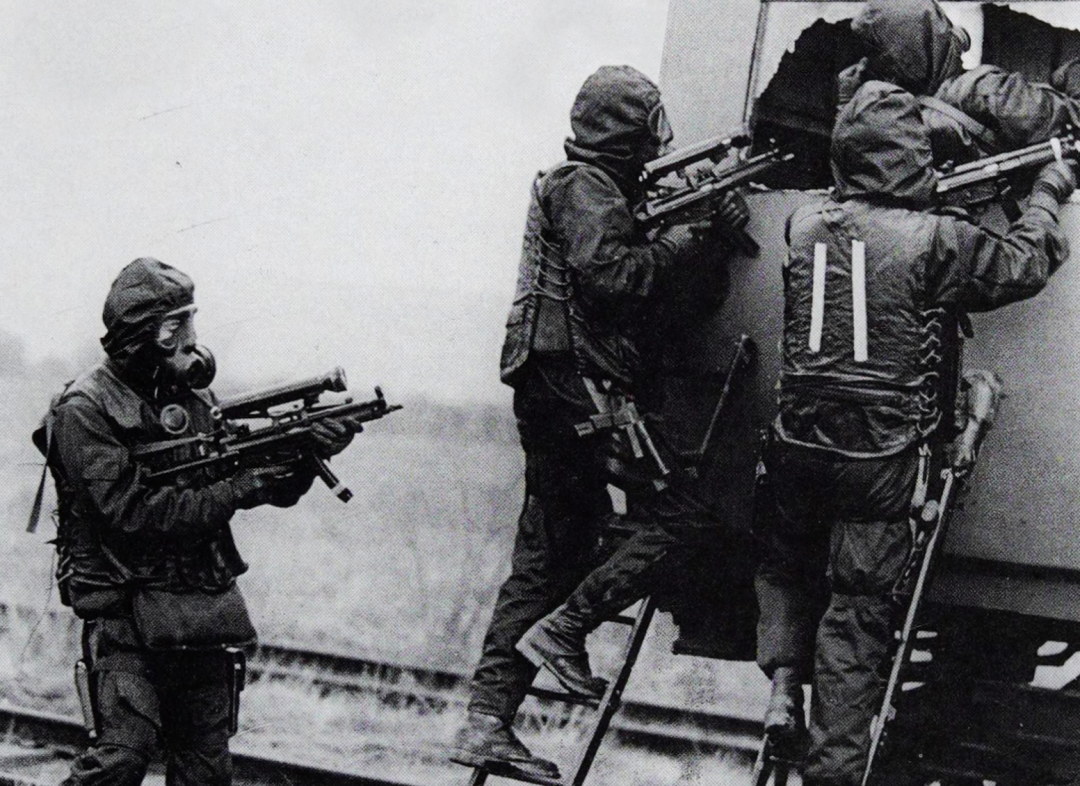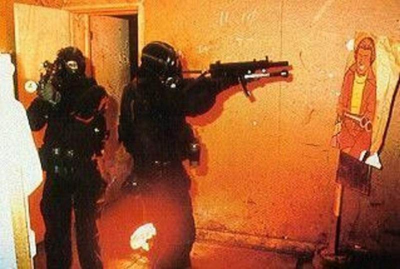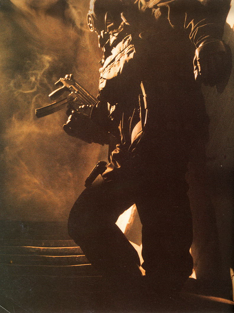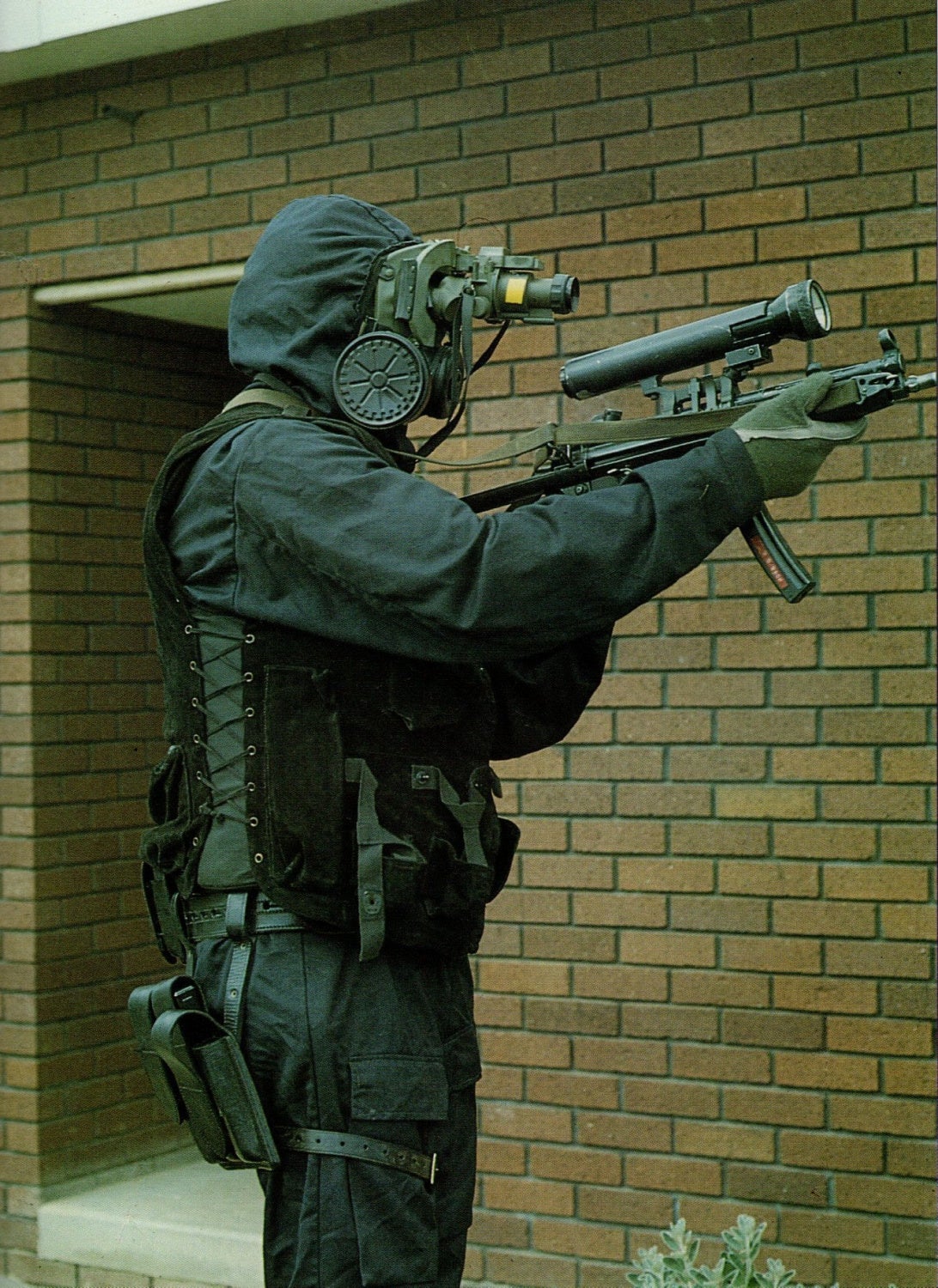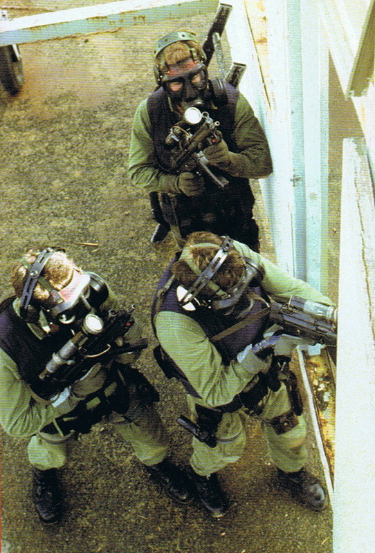 1990年,使用MP5进行反恐训练的SASR,此时SUREFIRE还不流行,在枪上挂着的是大号手电筒