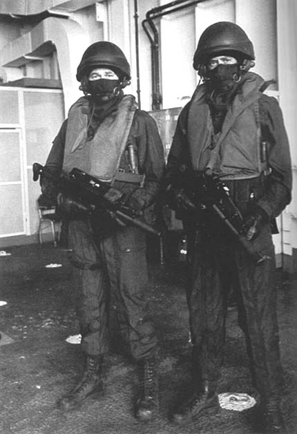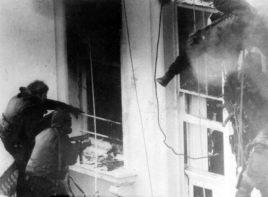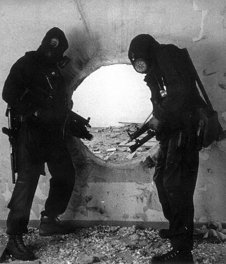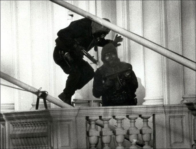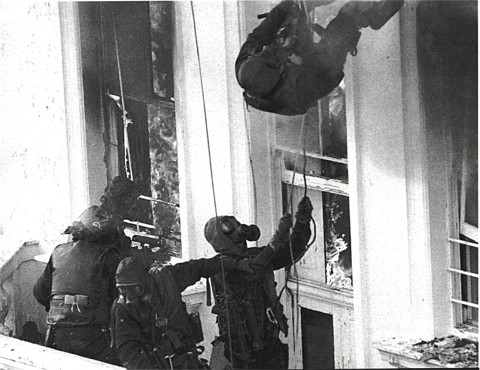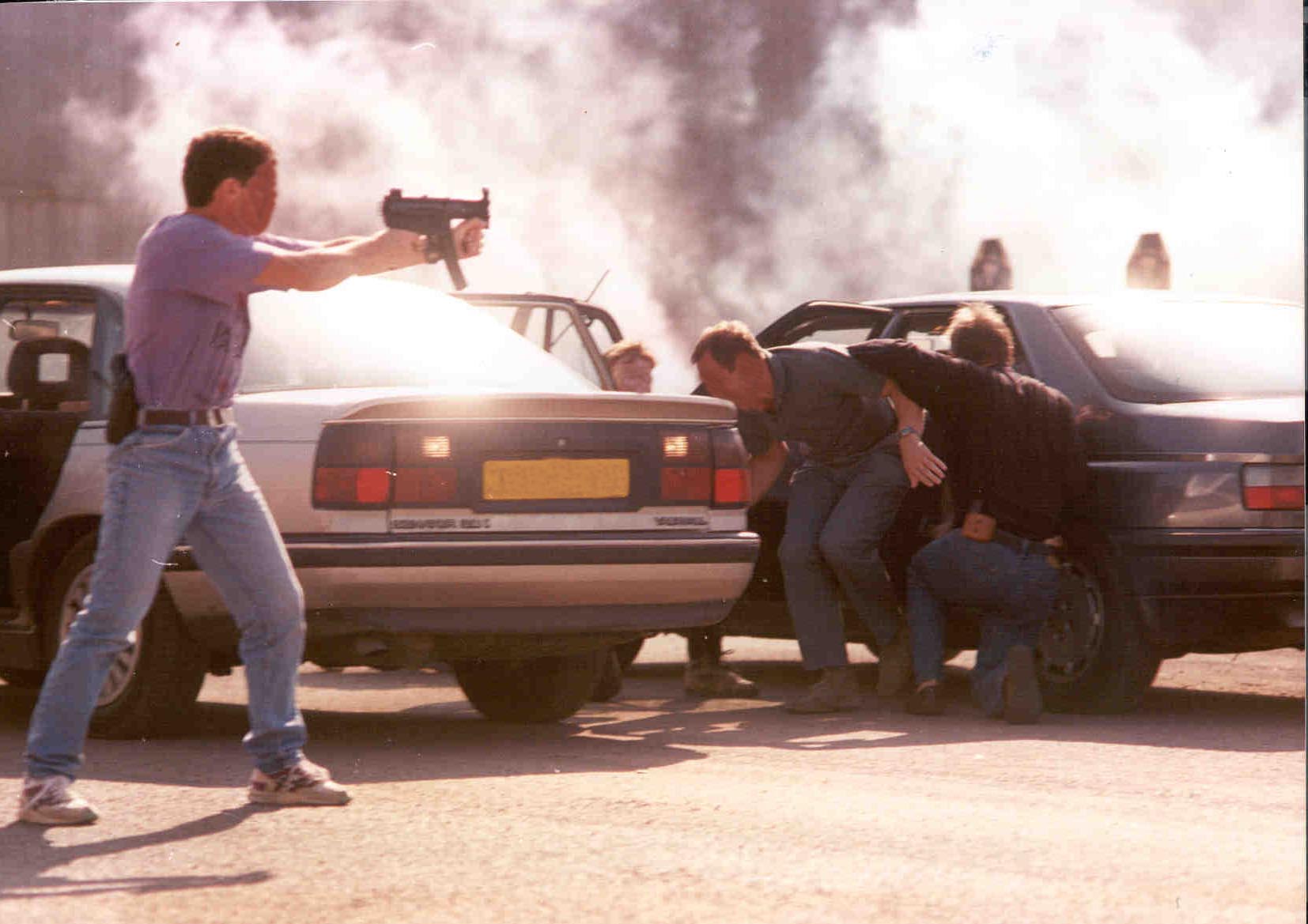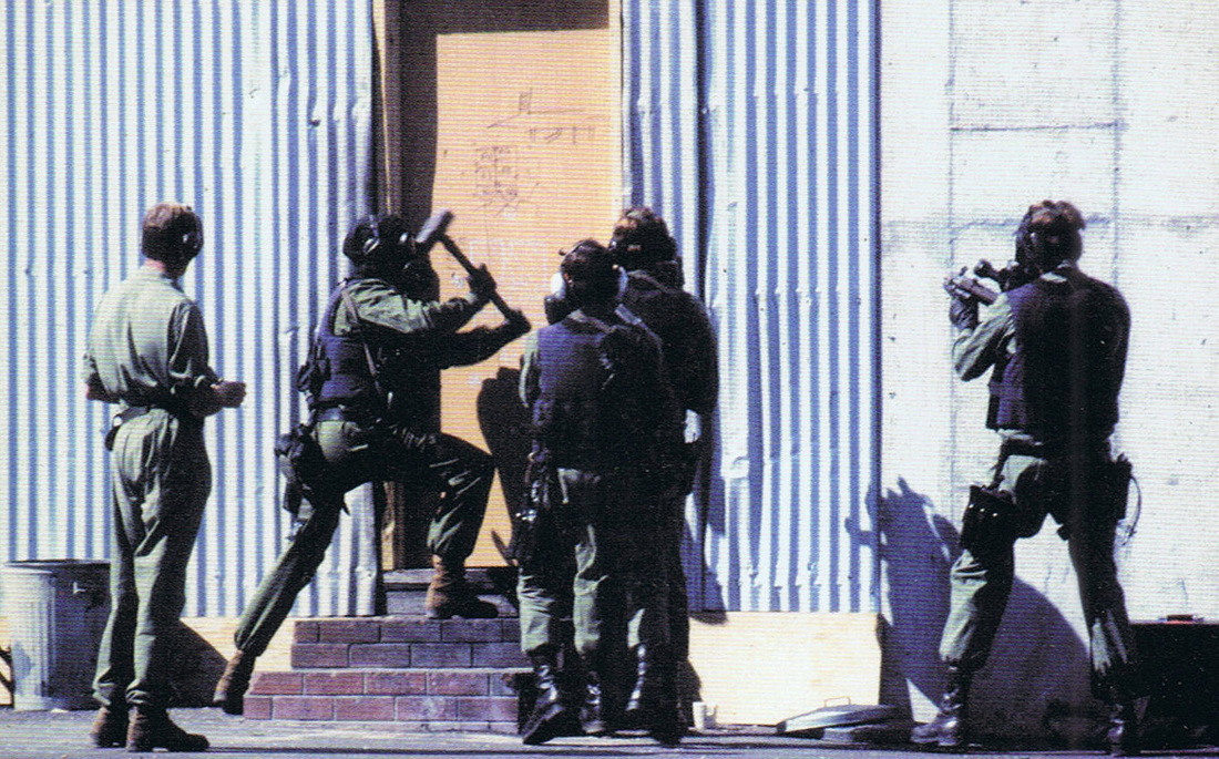 1990年,使用MP5进行反恐训练的SASR,此时SUREFIRE还不流行,在枪上挂着的是大号手电筒