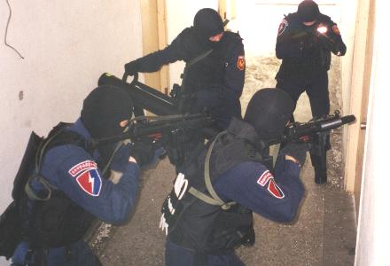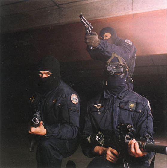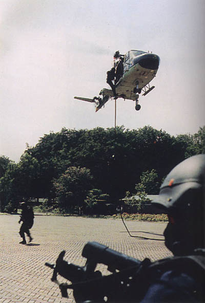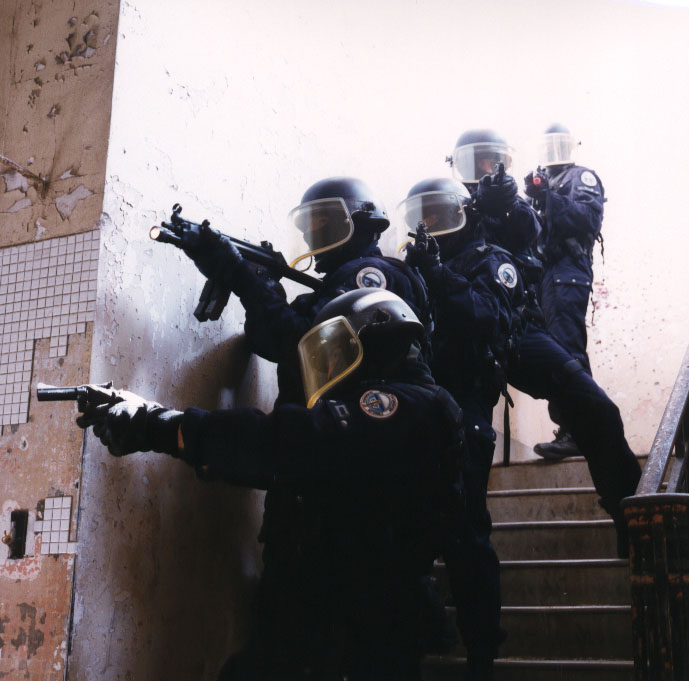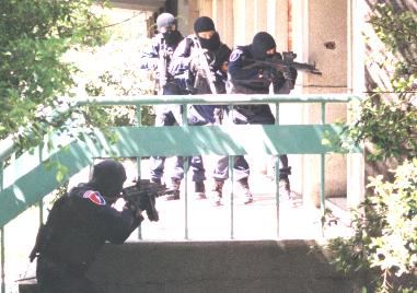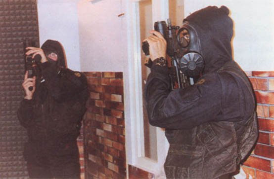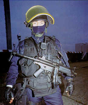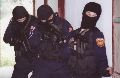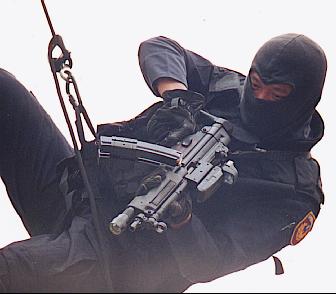 | 以下这一组五张的照片是台湾被称为霹雳小组的特警队。据说由于德国不批准HK公司向台湾出售MP5系列,因此台湾的MP5是从美国买来的二手货。更有传言指台湾在2005年购入一批“MP5”其实正式名称是SWA5,为美国一家小厂生产的仿制品,寿命、可靠性都比原厂低。但不知道是否属实。这组照片中的MP5都有3发点射,分别是MP5A5和MP5SD6。