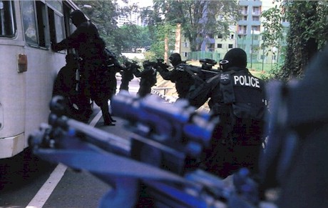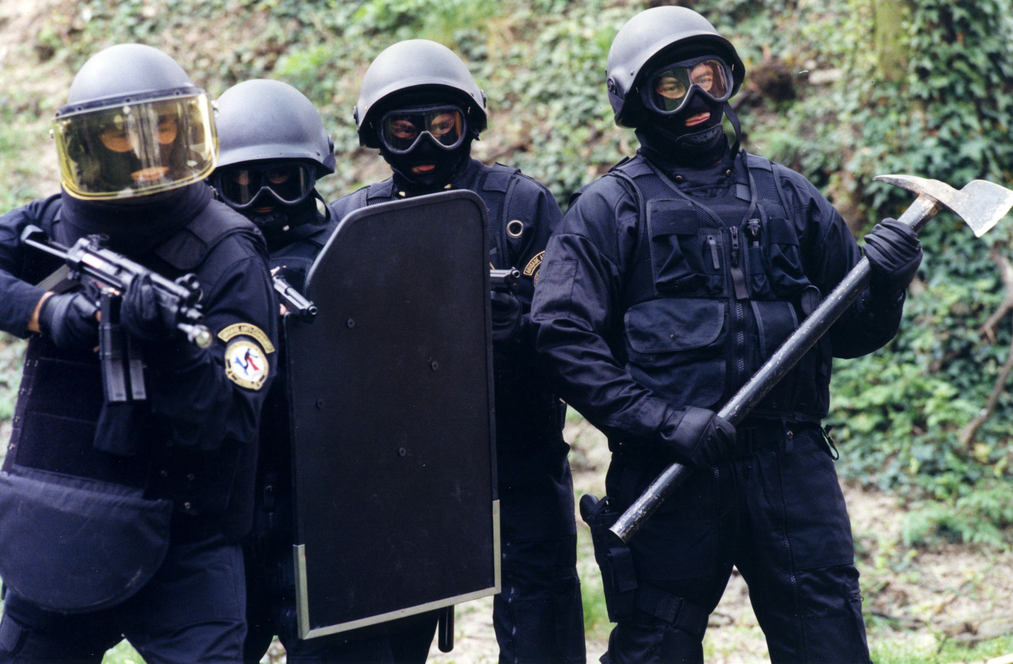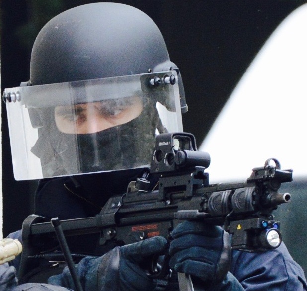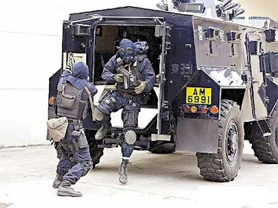 不知道是哪里的特警队,但写着“POLICE”至少应该是以英语为官方语的国家吧。