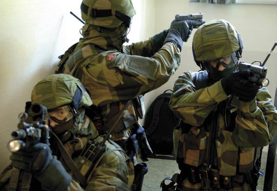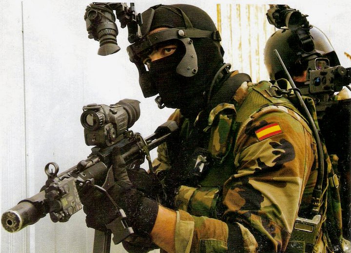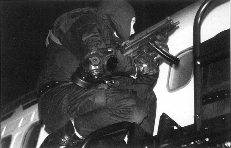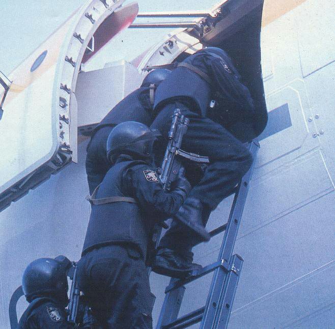 Especiales)在进行反劫机训练。左边的MP5SD上安装了又大又重的HK公司生产的瞄具,右边的MP5SD上是激光瞄具。