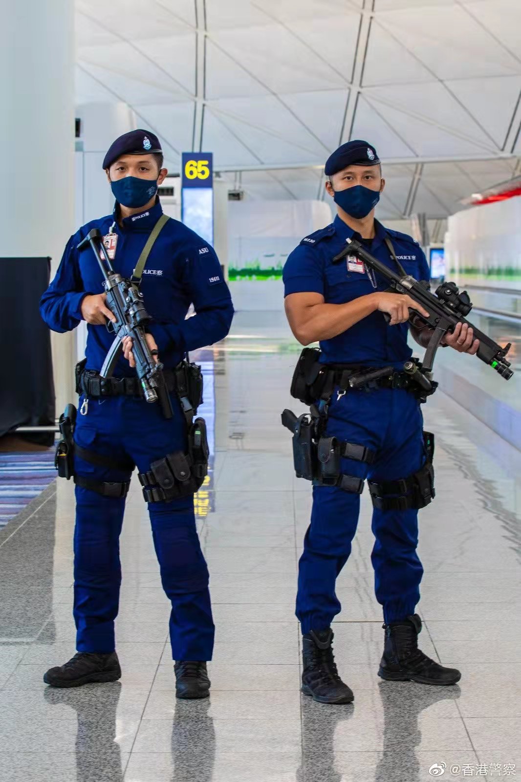 香港机场特警日常要手持“MP5轻机”(在香港的叫法)在机场内巡逻