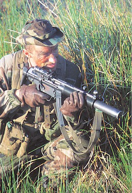 法国的GCP(Groupe Commando Parachutiste)部队,MP5SD6上的安装了法国制的激光瞄具,型号不祥