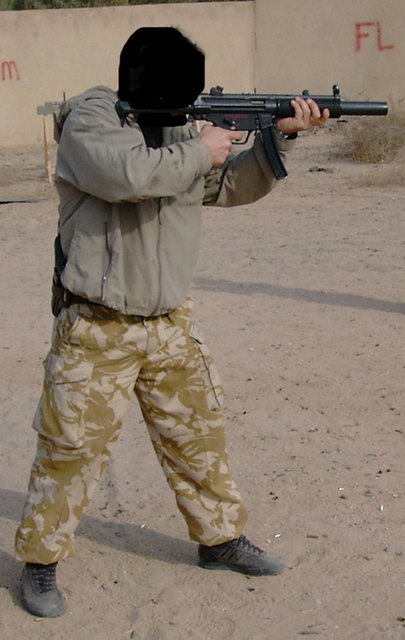 部署在阿富汗参加反恐战争的SAS,在基地里使用MP5SD练习
