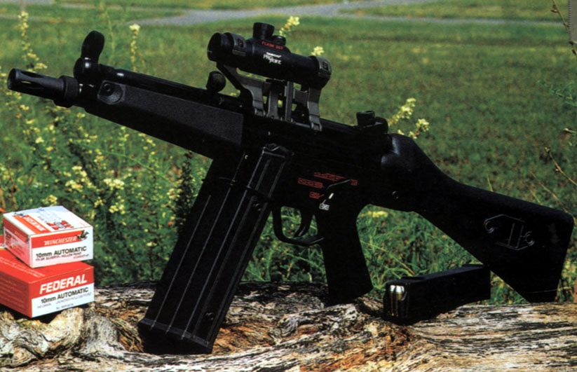 10mm口径的MP5冲锋枪(简称MP5/10)是HK公司在1991年根据美国FBI提出的要求研制生产的。FBI所配备的手枪主要是使用10mm AUTO弹的,而且他们感到现有的发射9mm子弹的冲锋枪威力不足,出于后勤供应及作战效能的考虑,FBI提出要为其HRT(人质拯救队)及其他特种部队配备10mm AUTO口径的冲锋枪。于是,HK公司在原有的9mm口径的MP5基础上改进,研制出发射10mm AUTO弹的MP5/10冲锋枪。 除了FBI外,美国不少城市、州、联邦等一些执法部门也有采用。