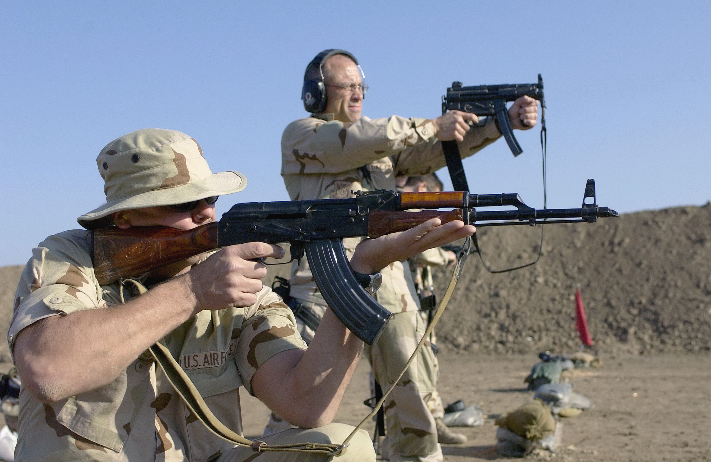 阿富汗战争期间,苏军士兵试射从阿富汗游击队手上缴获的MP5K