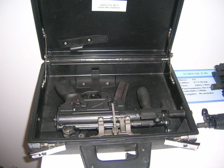 这种MP5K公文包枪是HK公司为隐蔽警卫的需要而开发的,扳机和保险可以通过提包把手上的联动装置操作,枪可以直接在提包内发射。由于提包上没有瞄具所以要用曵光弹进行射击。 |