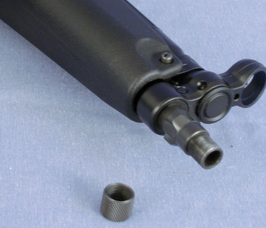 安装不同消声器后的MP5SD,从上至下:HK原厂、Qual-A-Tec公司、KAC公司