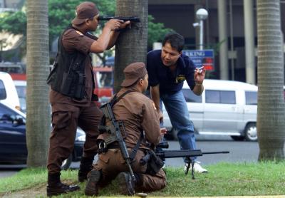 在菲律宾首都马尼拉,这个警察小组正展开他们的MSG90。时间是2000年12月30日。