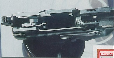 ![]() 左边是没有延长击锤顶纹和待击解脱按钮的LEM型或DAO型,右边是有的击锤顶纹和待击解脱按钮SA/DA型 |