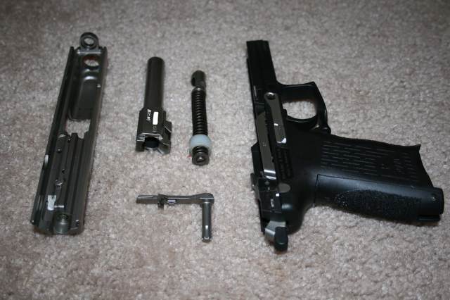 P2000 V1型:在击锤上有创新的扳机与待击阻铁保险,无待击解脱按钮,LEM扳机20N扣力纯双动发射。
